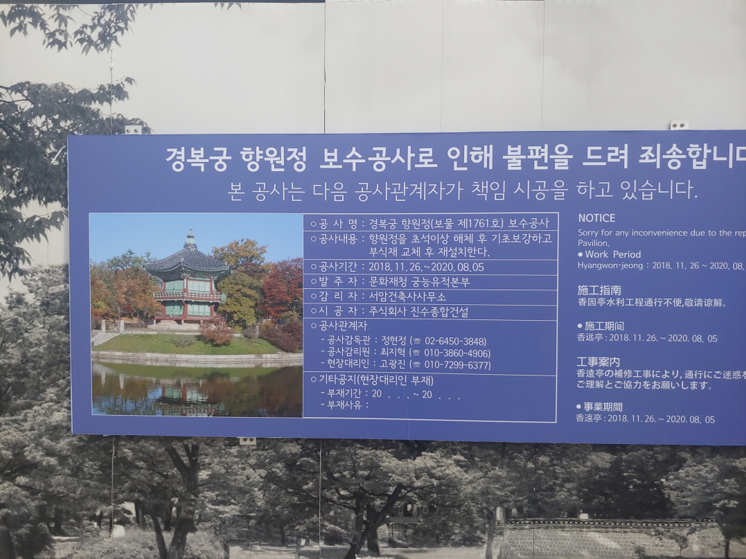 복원이나 보수공사는 여전히 진행중이었다. 향원정 보수공사 중