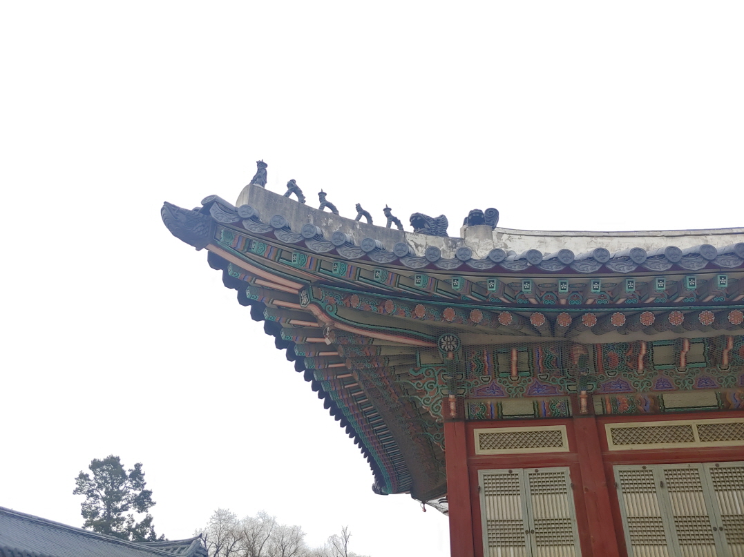 지붕 위 이런 모습이 신기해서 찍었다. 아쉽게도 명확하게 안 나왔다. 창덕궁에 갔을 때도 비슷한 것을 봤다.