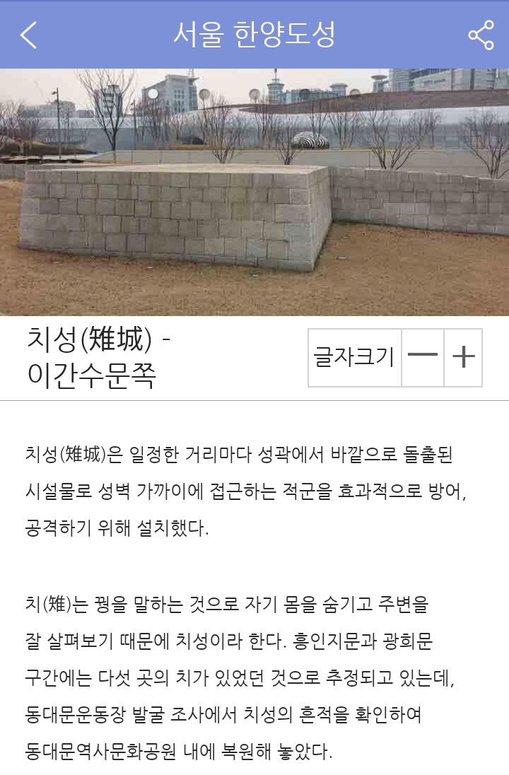 그래도 도심에 이런 문화재가 있다는 것이 마음에 든다. 여기서 '서울 한양도성' 앱을 실행해서 스탬프 인증을 받았다. 근처 사무소에서 스탬프 투어 지도를 받아서 찍어도 되는데 그 정도까지 할 생각은 없었다. 그래도 온 김에 앱에다가는 인증을 받았는데, 앱으로도 인증을 다하면 기념 뱃지를 주는지 모르겠다.