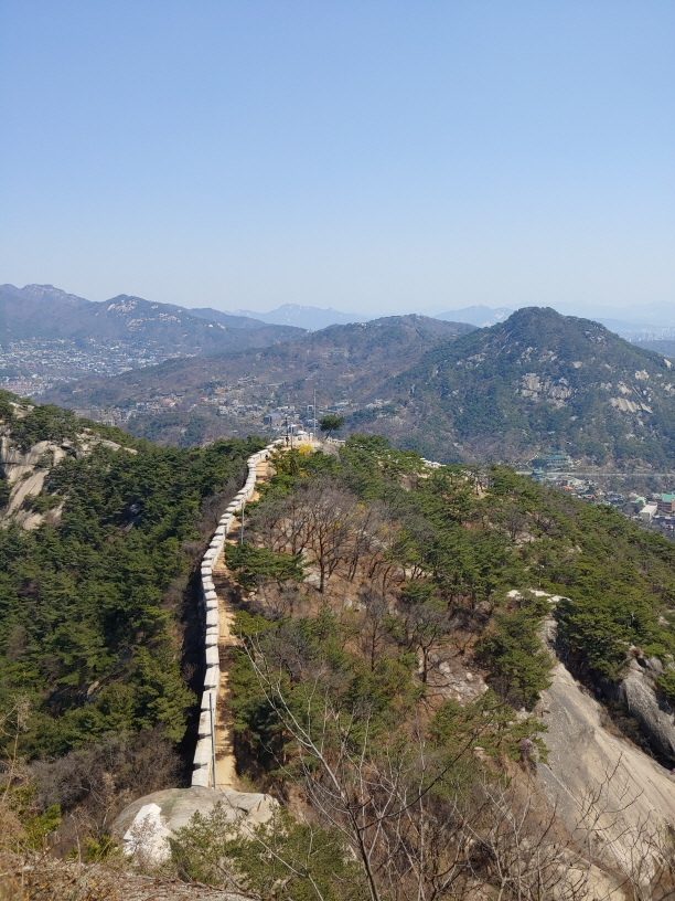 점점 창의문에 가까워지고... 저 앞에 보이는 높은 산이 백악 구간인 것 같아서 도저히 이어서 걸을 수가 없었다.