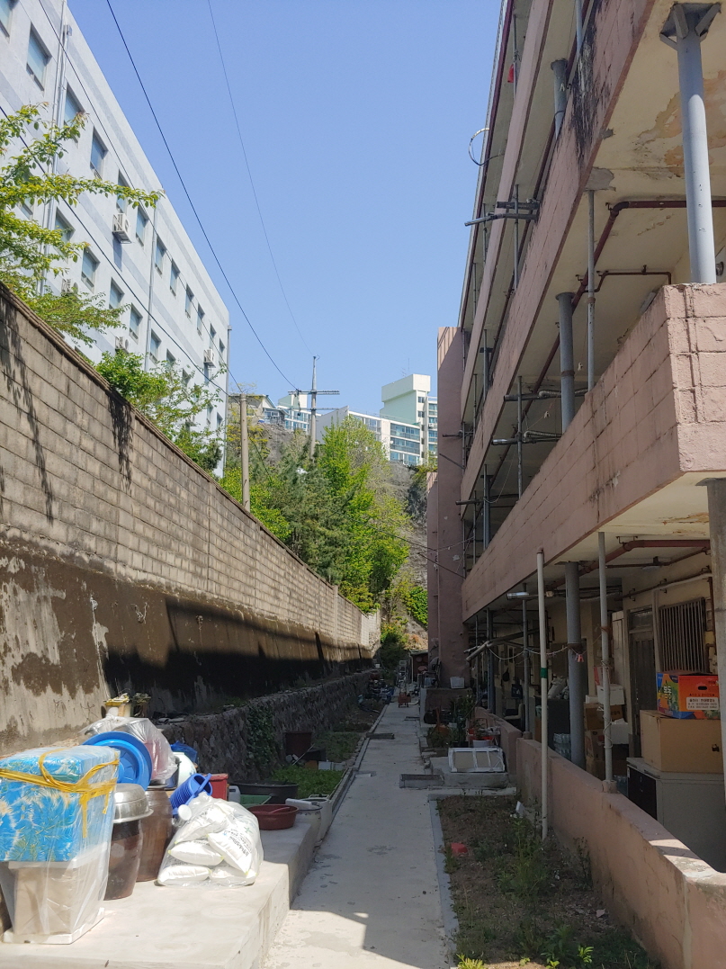 엄청 오래된 아파트이다. 앞에 보이는 건물이 C동으로 3층 짜리. 뒤에 있는 건물이 B동으로 4층 짜리다.