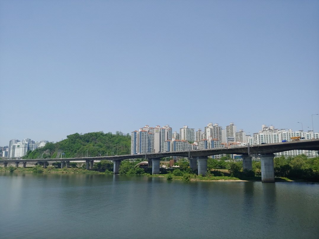 근처 공원에서 찍은 옥수역 사진이다. 현재 3호선과 경의중앙선이 지나가고 나중에 그 옆으로 GTX도 지나가는 듯 하다.