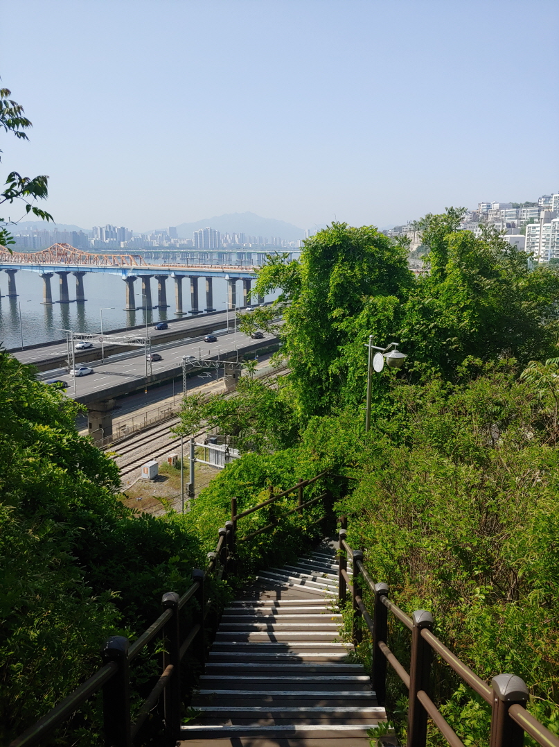 그리 흐리지 않았는데 저 멀리는 흐리게 보인다. 이날 뿐만 아니라 다른 날에도 멀리 보면 비슷하게 흐리게 보였던 것 같다. 주변에 더 둘러볼 곳이 있었는데 바로 응봉산 쪽으로 내려갔다.
