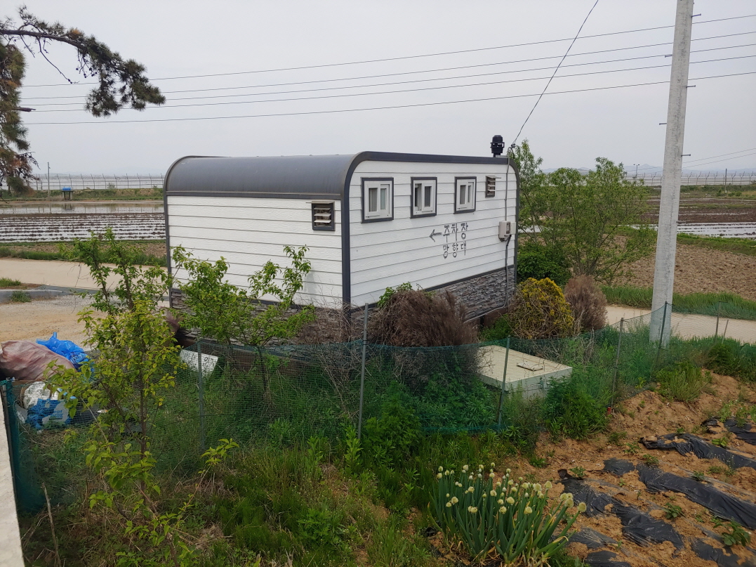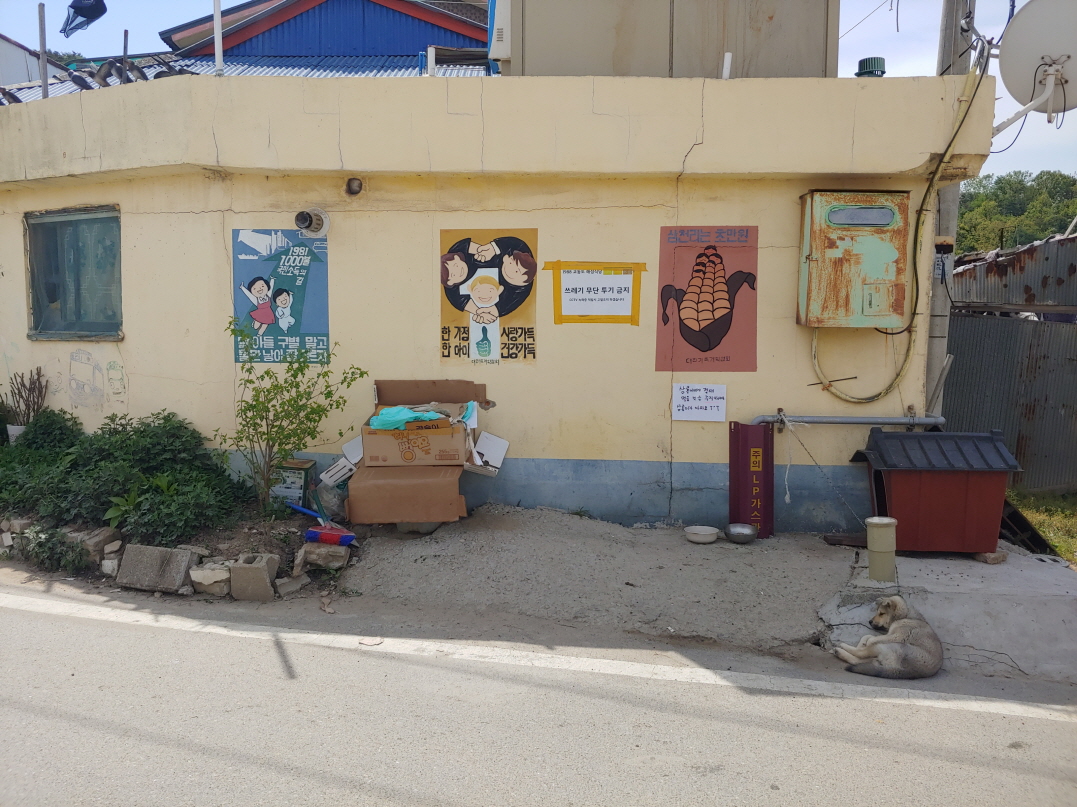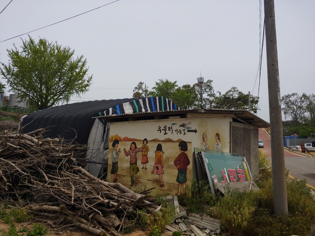 가운데 주황색 비닐이 잔뜩 쌓여있는 곳이 화장실. 그 왼쪽이 교동 제비집이다.