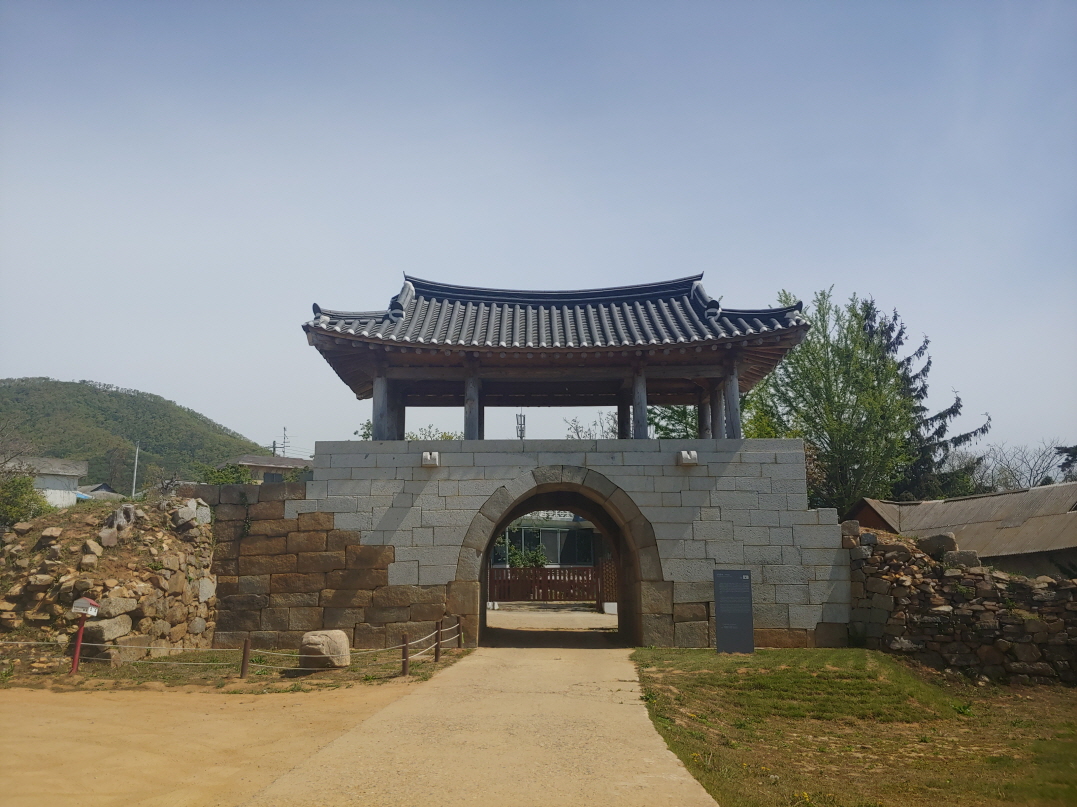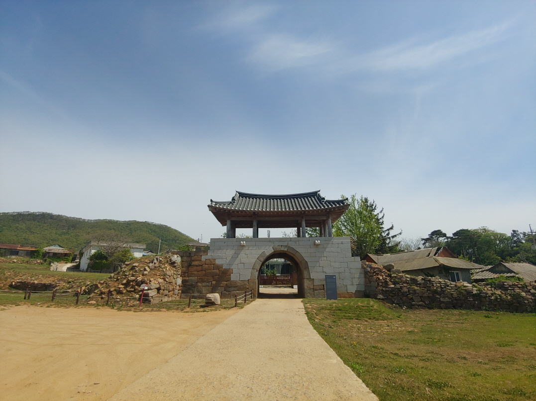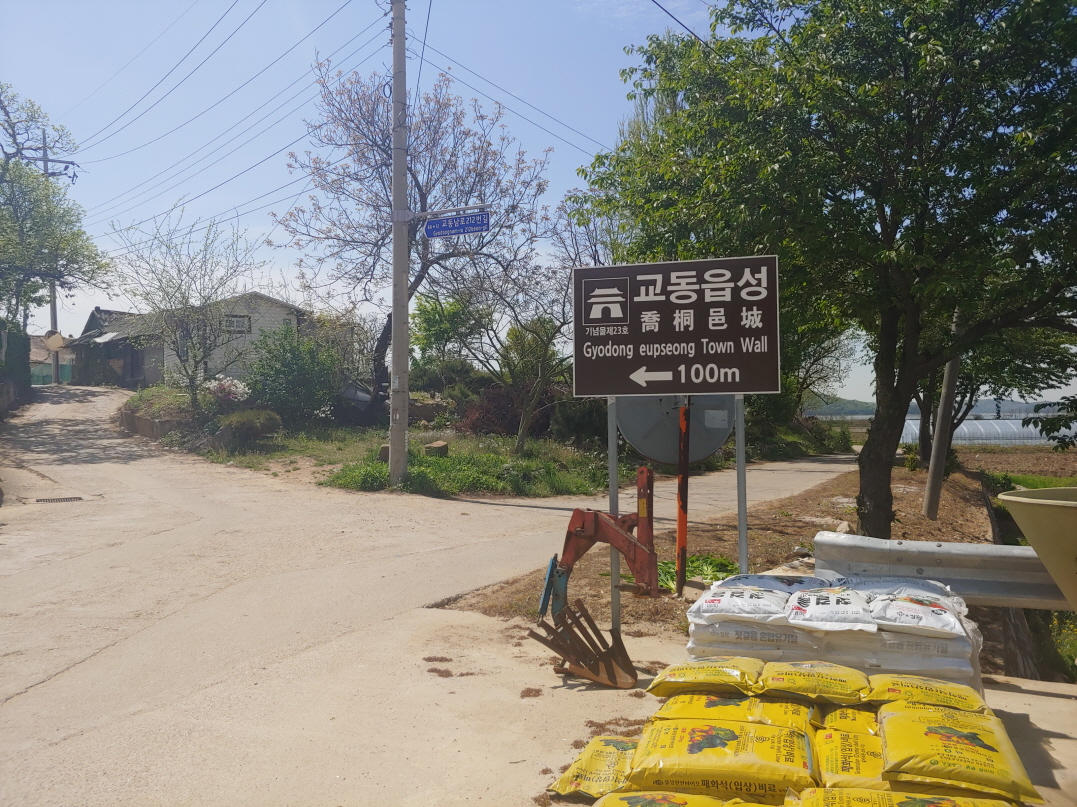 교동읍성까지 차를 타고 가면 다시 나오기 힘들 것 같아서 입구에 넓은 공간이 있어서 일단 차를 대고 걸어서 갔다. 교동읍성까지 100미터. 1분도 안 걸린다. 위 사진 외에 여기서 사진을 하나 더 찍었는데 그 사진을 찍고 아래 사진을 찍을 때까지 40초가 지났을 뿐이다. 그것도 교동읍성에 도착했을 때 누가 있어서 교동읍성 사진을 바로 못 찍고 옆에 있는 안내판부터 찍은 것. 약간 언덕길이지만 30초만 걸어가도 교동읍성이 보일 것이다.