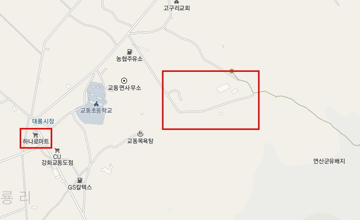 위치는 대략적으로 대룡시장과 연산군유배지 사이. 교동도 지도가 상세히 나오지 않아서 설명하는 데 한계가 있다. 하나로마트에도 주차 공간이 있긴 한데 그리 넓지 않다. 위 사진에 나오는 주차공간은 뭐하는 곳인지 모르겠지만, 관광객을 위한 주차장으로 만들어 놓은 곳인지. 강화군청이나 교동도에 문의하면 정확히 알 수 있을 것이다.