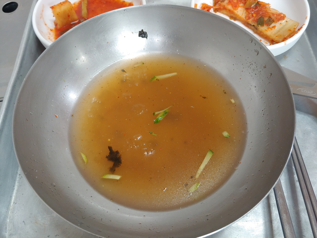 냉면에 후추가 뿌려진 것이 신기했다. 처음에는 후추맛이 나서 식초를 더 넣어야 하나. 그래서 식초가 한 병 있나 하는 생각이 들었으나, 어설프게 넣었다간 망칠 것 같아서 그냥 먹었다.
