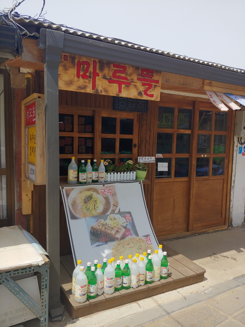 이런 저런 가게들이 보인다. 내가 도착했을 때가 11시. 평일 오전이라 사람들이 별로 없었다. 상점 주인들도 파리가 더 많다고 할 정도. 연산군 유배지에 갔다가 다시 점심을 먹으러 돌아왔을 때는 사람들이 많았다. 주차장에도 빈자리가 별로 없을 정도였다. 평소 주말에는 사람들이 훨씬 많을 것이다.