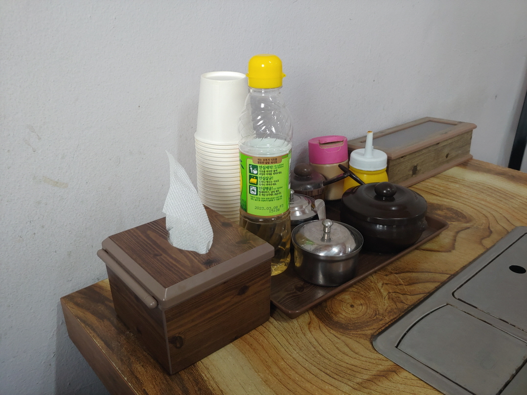 각종 양념과 메뉴판