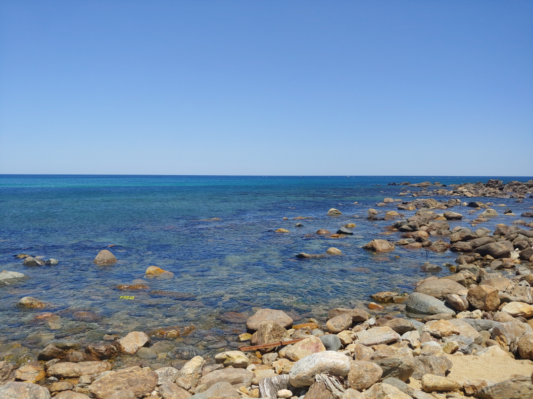 조금 가까이에서 찍었다. 가까이에는 흐린 색깔인데 저 멀리 바다는 새파랗다.