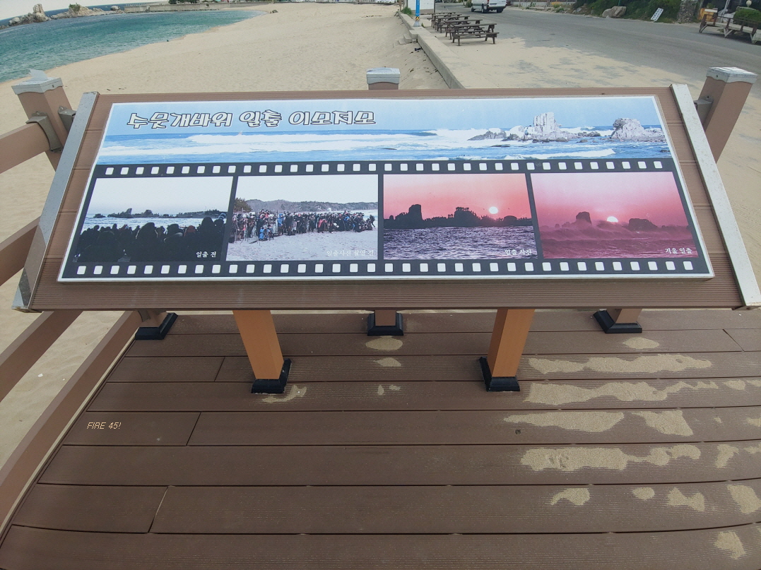 해변에 가서 사진을 찍고 이 벤치에 앉아서 쉬다가 일어나서 또 사진을 찍고 그랬다.