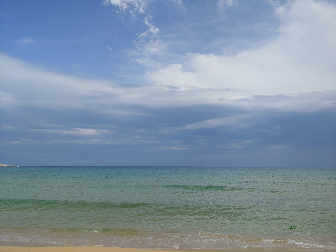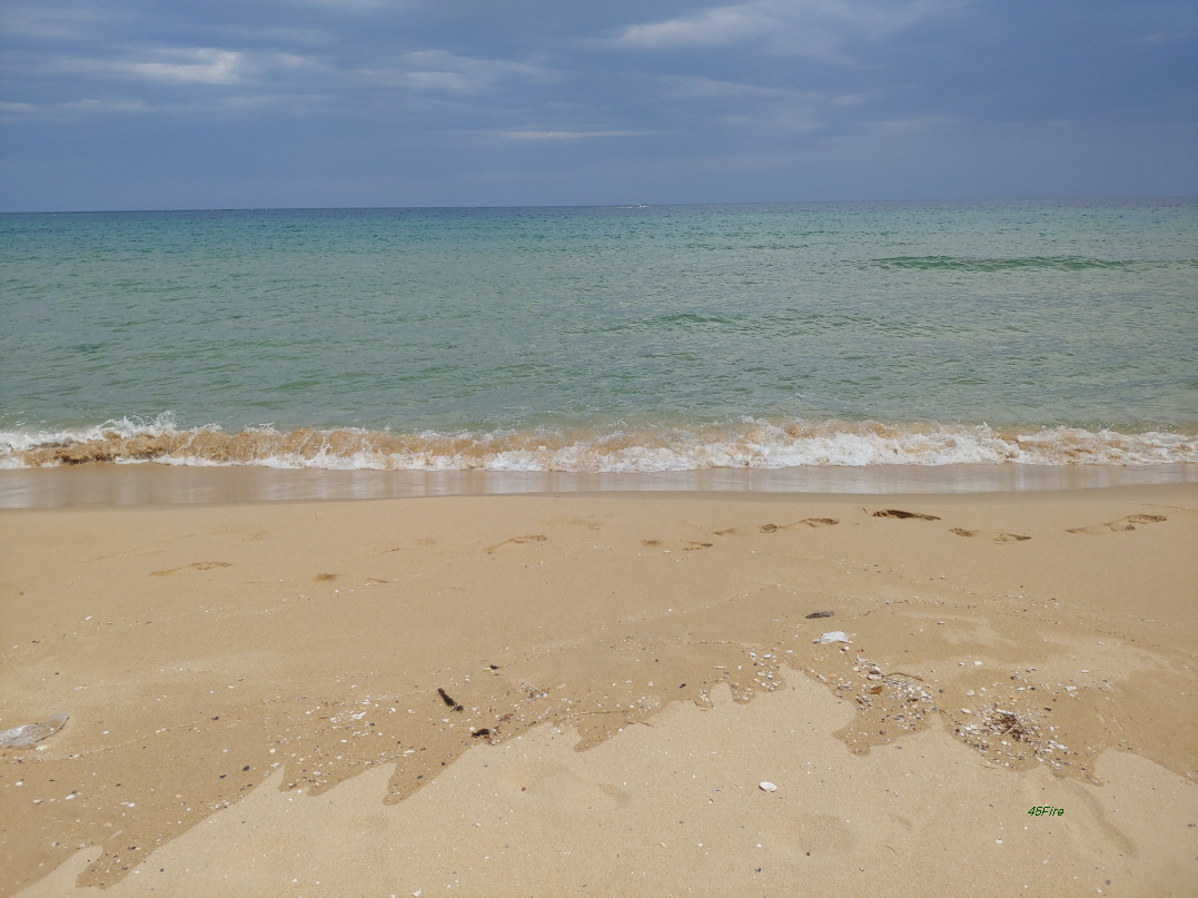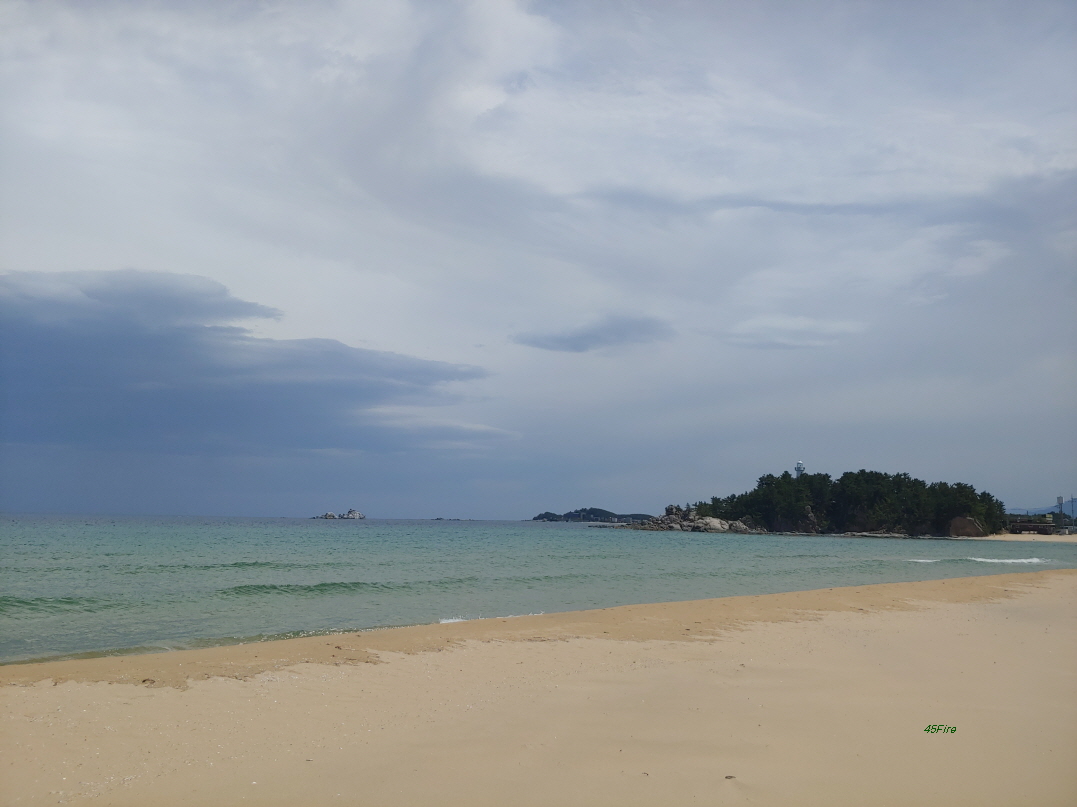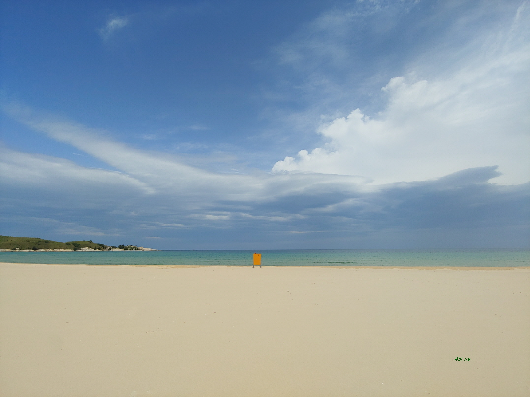 백사장에 푸른 바다가 마음에 들었다. 날이 맑아져서 이런 분위기가 나왔다. 오전에 공현진 해변에 갔을 때는 구름 때문에 이런 색깔을 볼 수 없었다.