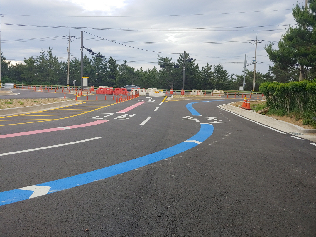 현재 고성 방향은 막혀 있었다. 신호등도 있는 것을 보면 조만간 열어놓지 않을까. 지금 건너편으로 넘어가거나 이쪽으로 넘어오려면 지하도 같은 길을 건너야 한다.