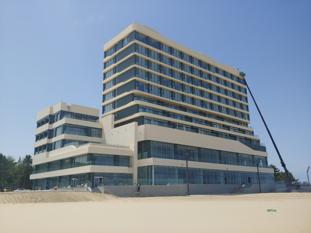 해변 바로 옆에 새로 짓는 건물이 보였다.
