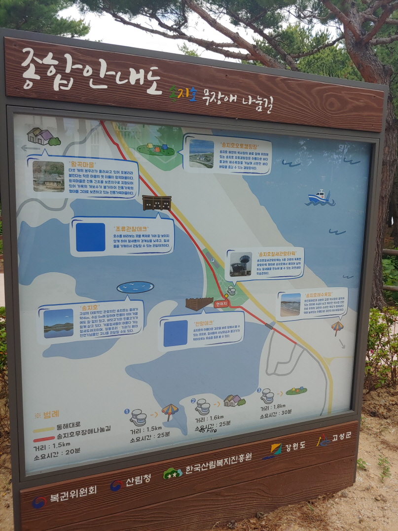 여기를 한 바퀴 돌았다면 송지호의 매력을 제대로 느낄 수 있었을텐데 그러지 못했다. 오전에는 구름이 있어서 시원하고 좋았는데 오후에는 해가 떠서 더웠고, 자전거라도 대여할 수 있었으면 자전거를 타고 돌아봤을텐데 코로나 때문에 자전거 대여소도 휴업중이었다. 자전거를 빌릴 수 있었다면 자전거를 타고 왕곡마을까지 갔을 것이다.
