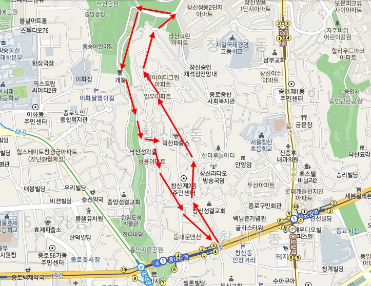 지난 번에 창신동으로 임장을 왔을 때에는 창신역에서 내려서 창신아파트를 지나 언덕을 올라가서 낙산공원까지 갔었다. 사전조사를 했을 때 경희궁 자이에 버금가는 입지이나 재개발은 어려울 것이라는 견해가 있었다. 실제로 다녀온 결과 그 의미를 조금 이해할 수 있었다.