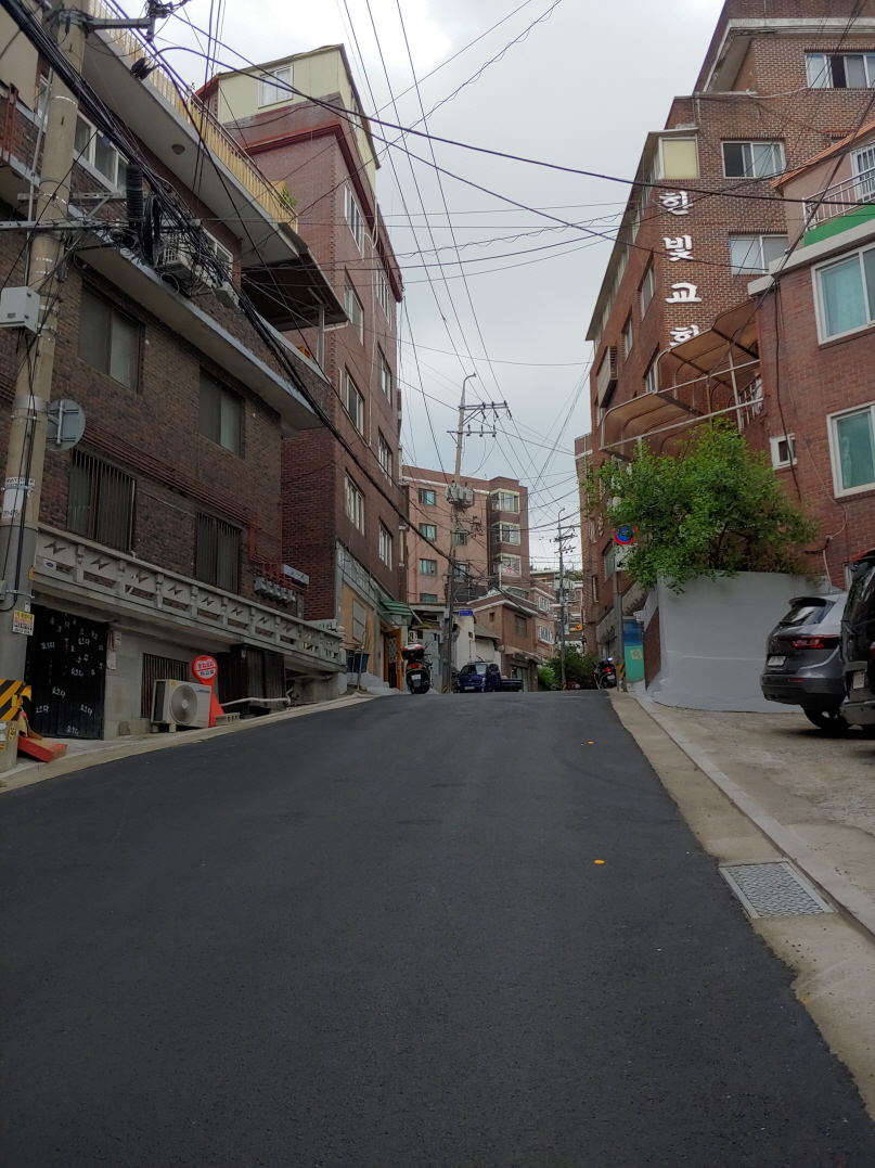 이렇게 약간 경사진 도로를 따라 양옆으로 아파트들이 있었다.