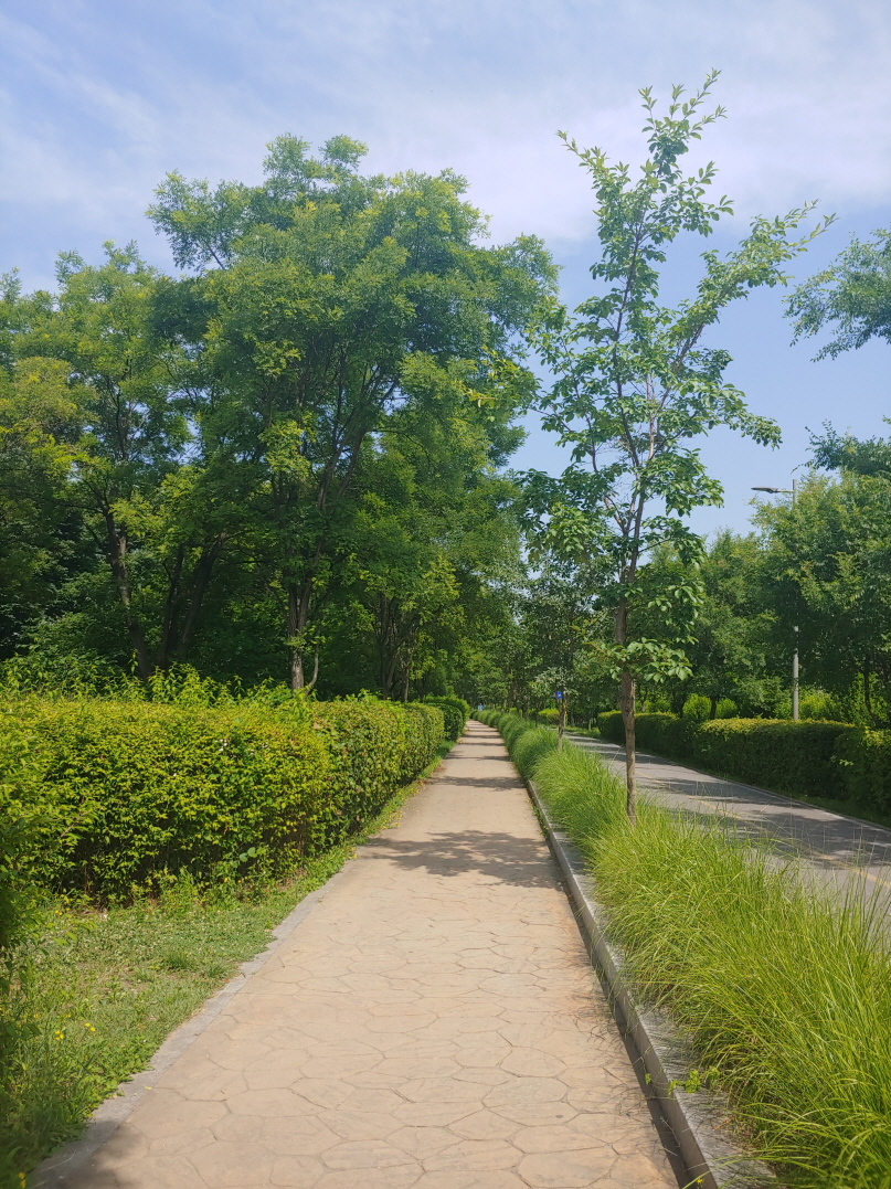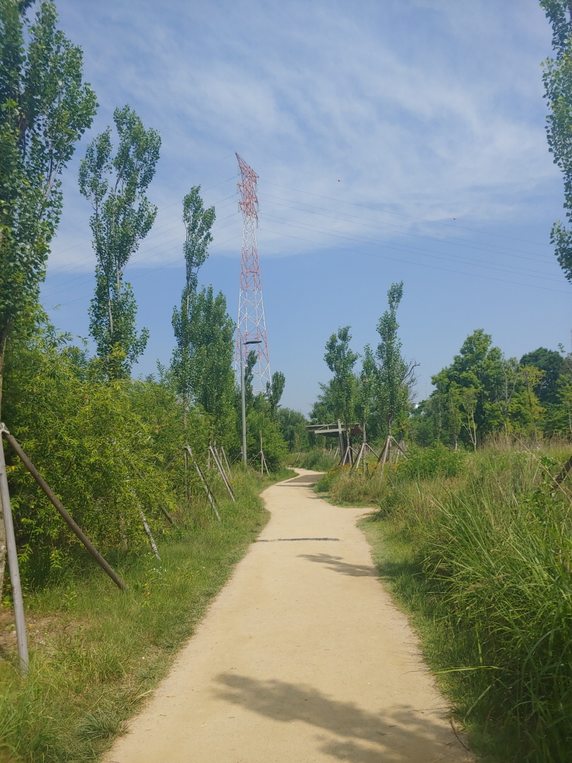 전망 데크를 만들어 놓은 것 같은데 높이 자란 나무와 풀 때문에 한강 전망이 안 나왔다.