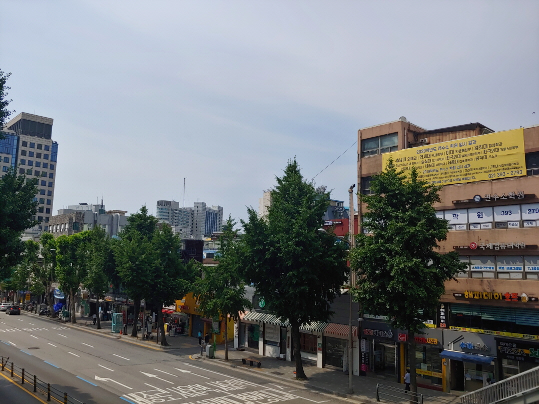 약 2년 전에 잠깐 부동산 임장을 다닐 때 여기에도 왔었다. 그때와 크게 달라진 점은 없다고 느꼈다. 서대문역 근처에 공사중이던 건물이 조만간 완공이 되는데 펜스가 사라진 것은 눈에 띄었다. 그리고 경희궁자이와 도로 사이에 있는 오래된 상가건물들. 처음 봤을 때 엄청 낡았다고 느꼈는데 이번에는 나무에 가려서 잘 안 보였다.