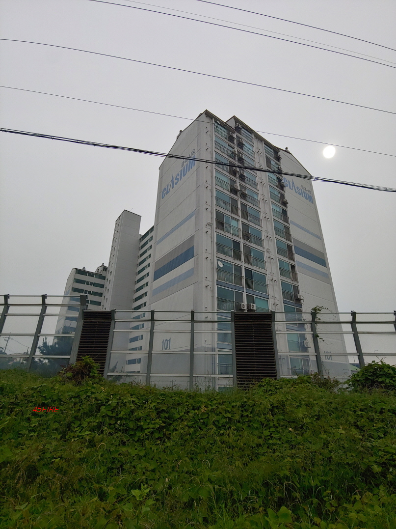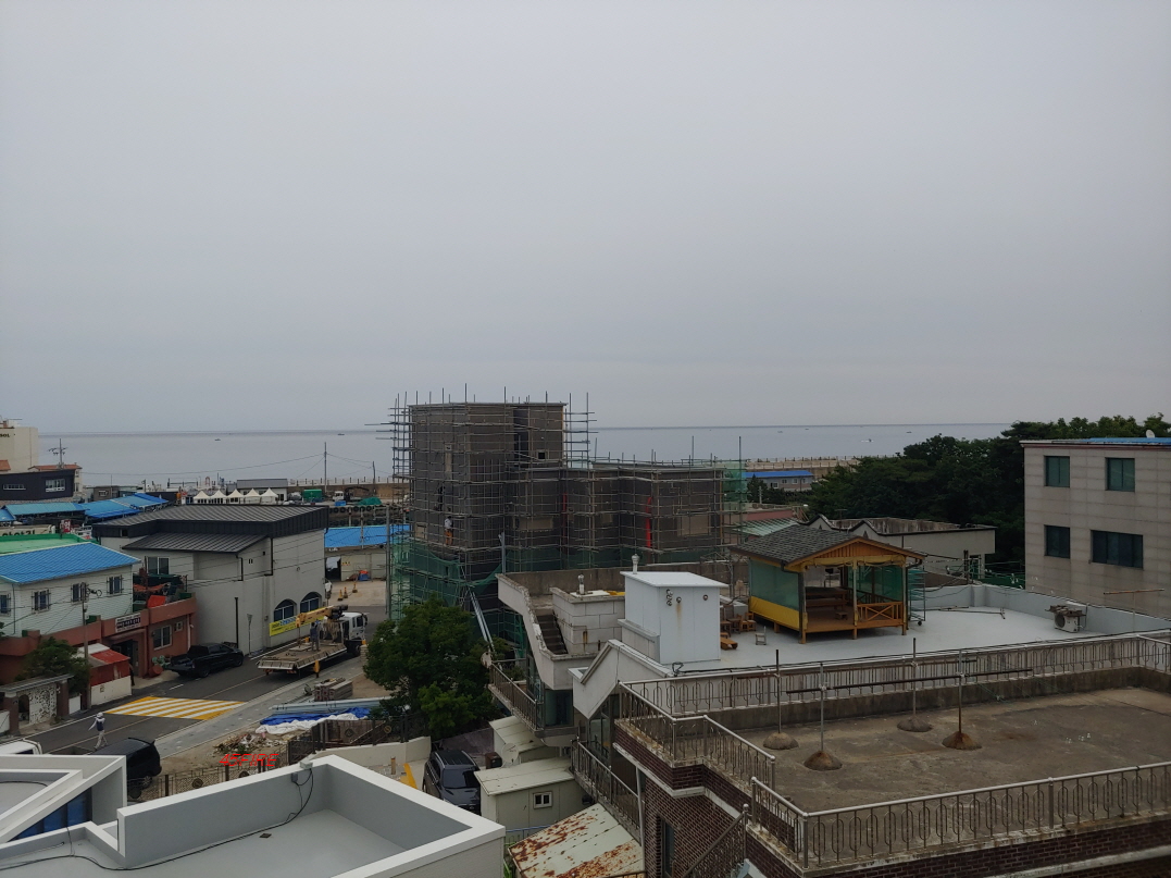 좌측 넘어로 보이는 아파트가 유진클래시움아파트이다. 진정한 오션뷰는 우측 펜션 같은 건물이 더 잘 나올 것이다.