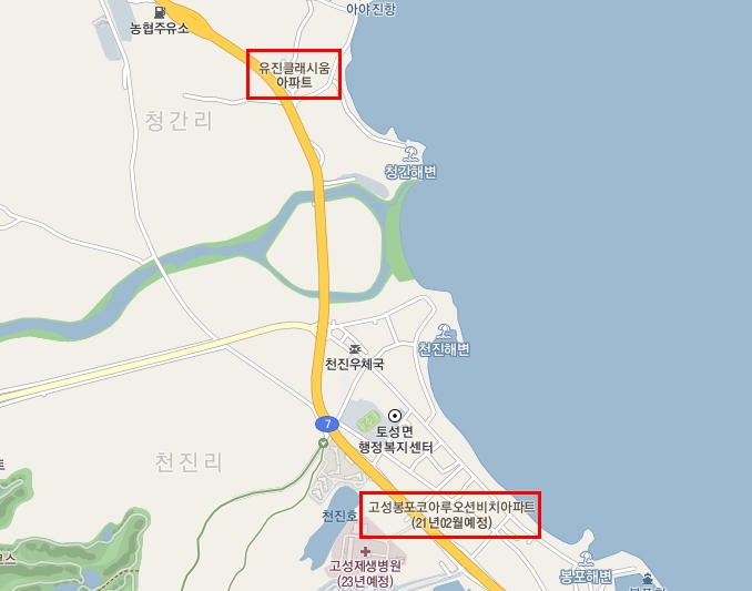 좌측의 흰색이 고성봉포코아루오션비치아파트(21년 2월 예정) 370세대