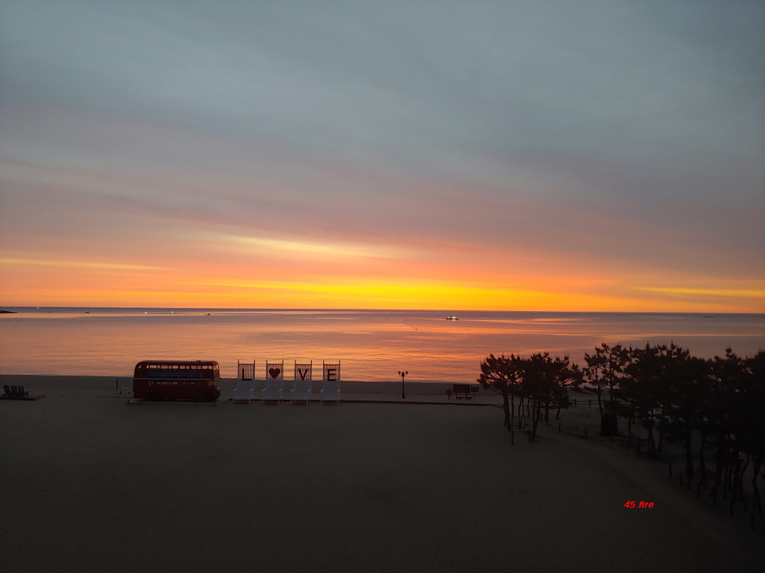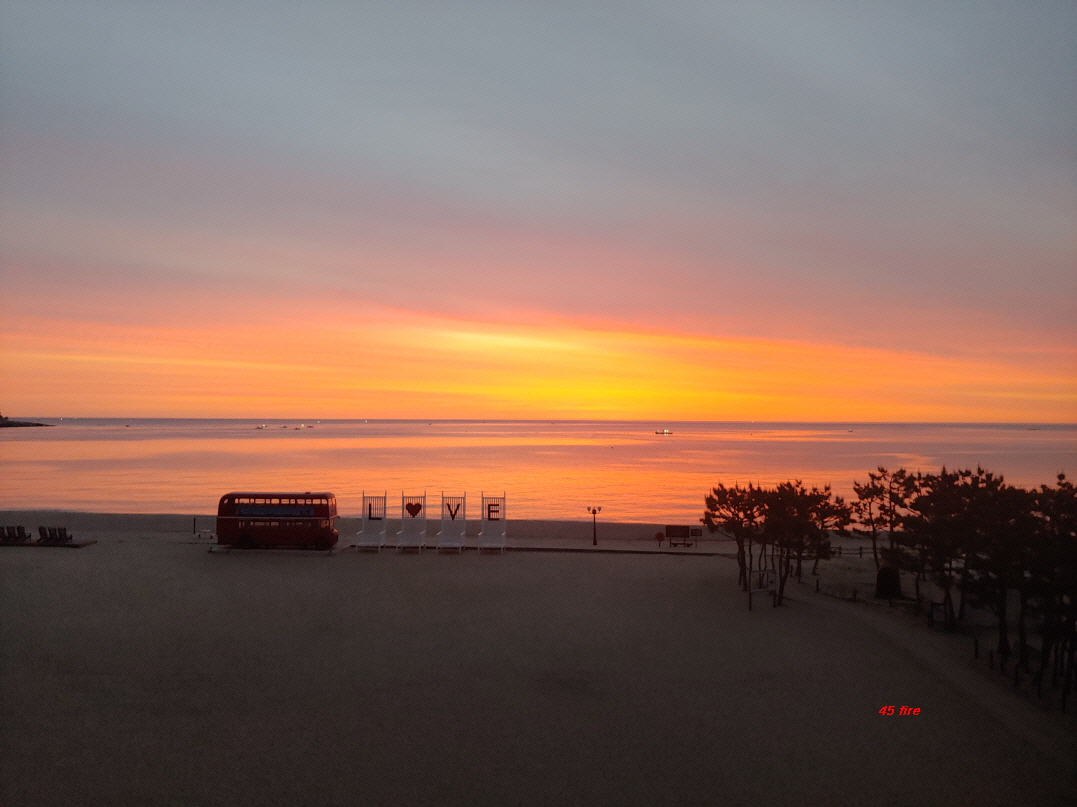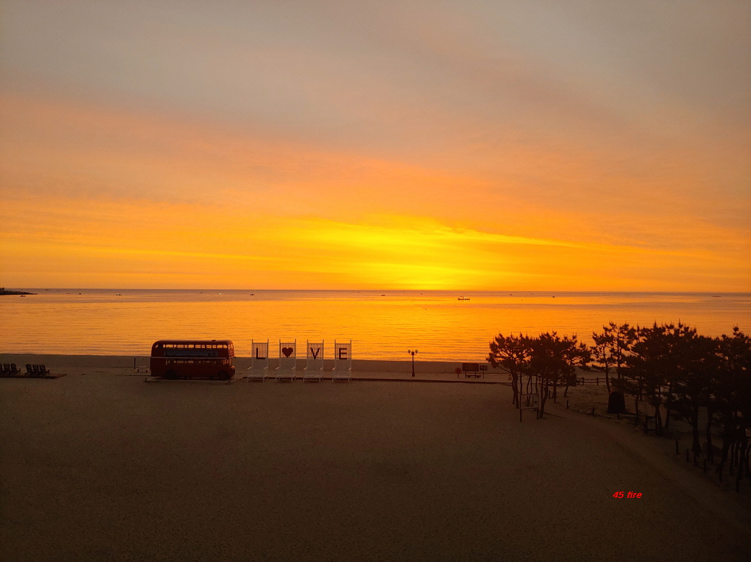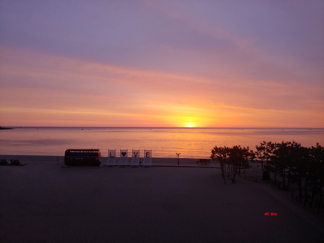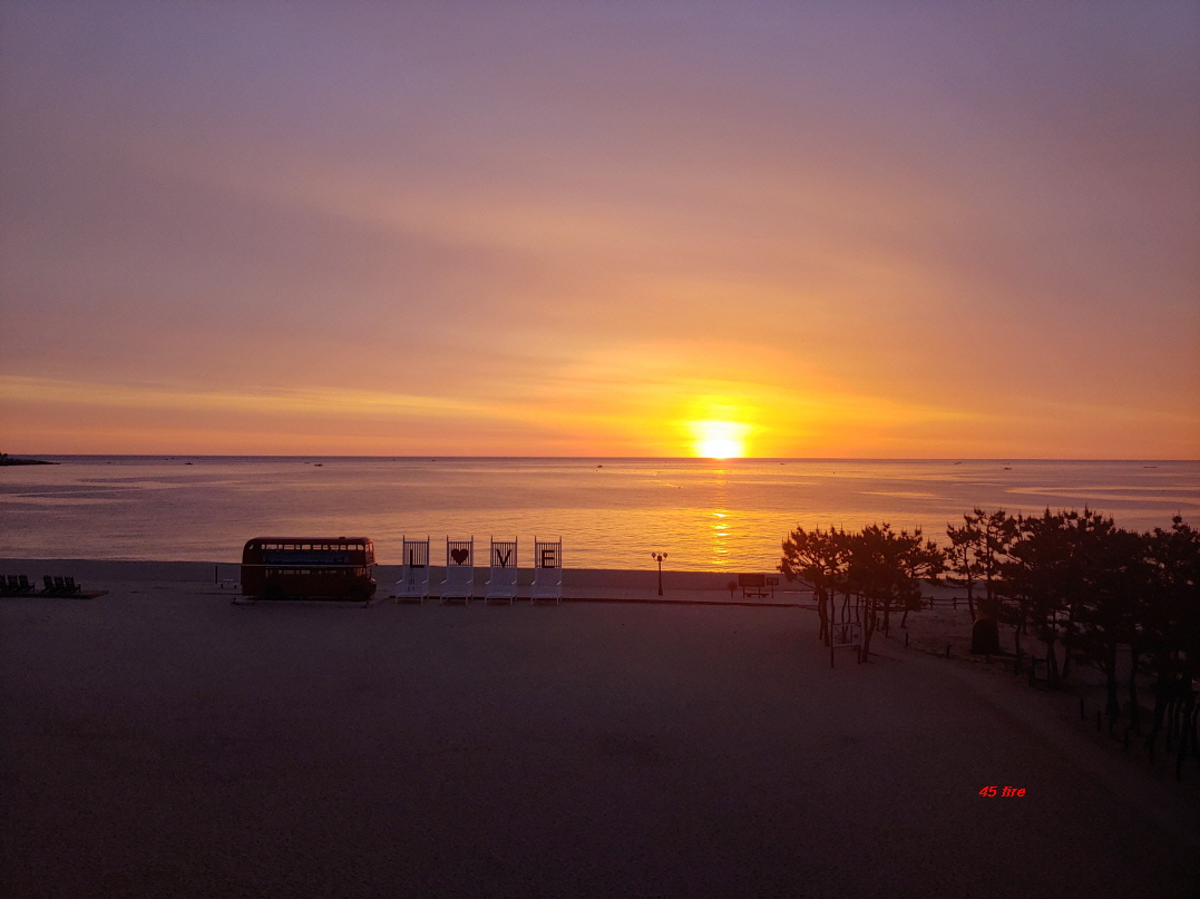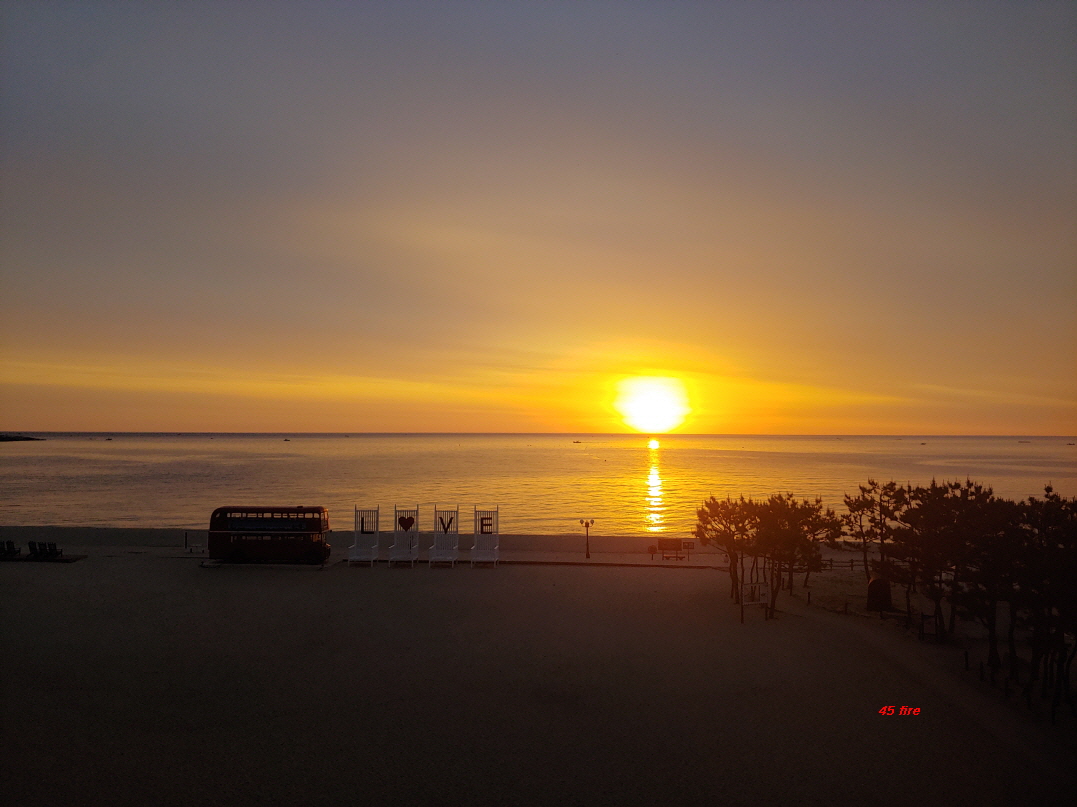 오션뷰 덕분에 환상적인 일출을 감상할 수 있었다. 사실 일출은 하나도 기대를 안 했던 부분이다. 일출을 볼 생각도 안 하다가 전날 밤에 한번 볼까 하는 생각이 들어서 일출 시간을 검색했다가 깜짝 놀랐다.