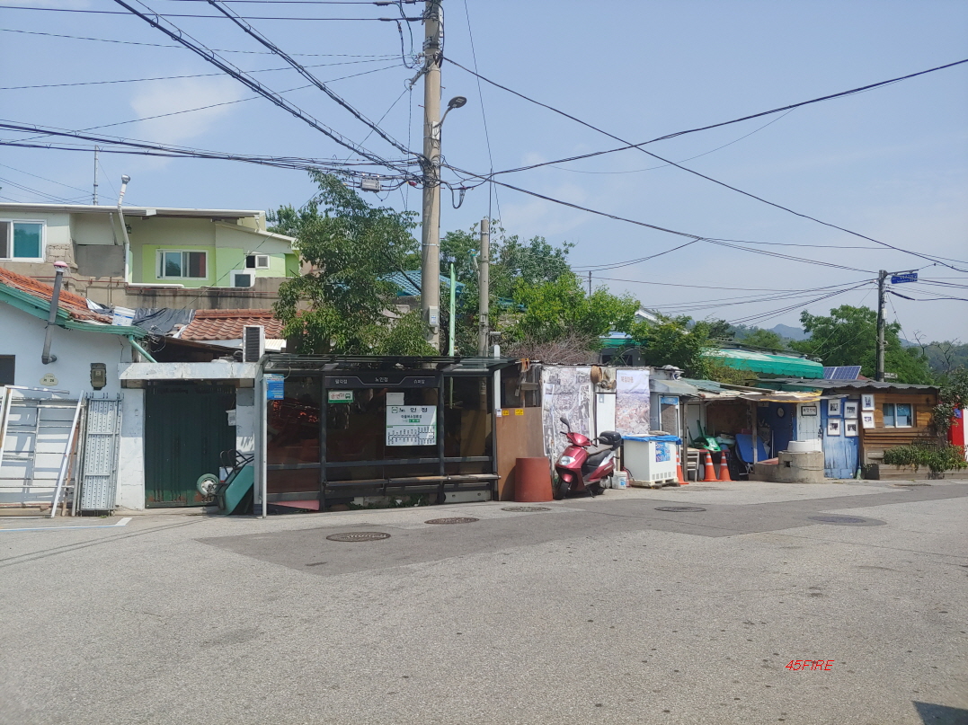 마을버스 정류장과 독특한 분위기의 건물들이 있었다. 햇살이 강하지만 않았어도 이 주변을 더 둘러봤을 것이다. 여기서 어떤 할아버지가 어디를 찾냐고 물었다. 조금 이상한 사람 같았는데 임장을 나오면 부동산뿐만 아니라 이런 저런 주민들을 통해 정보를 얻을 수 있다.