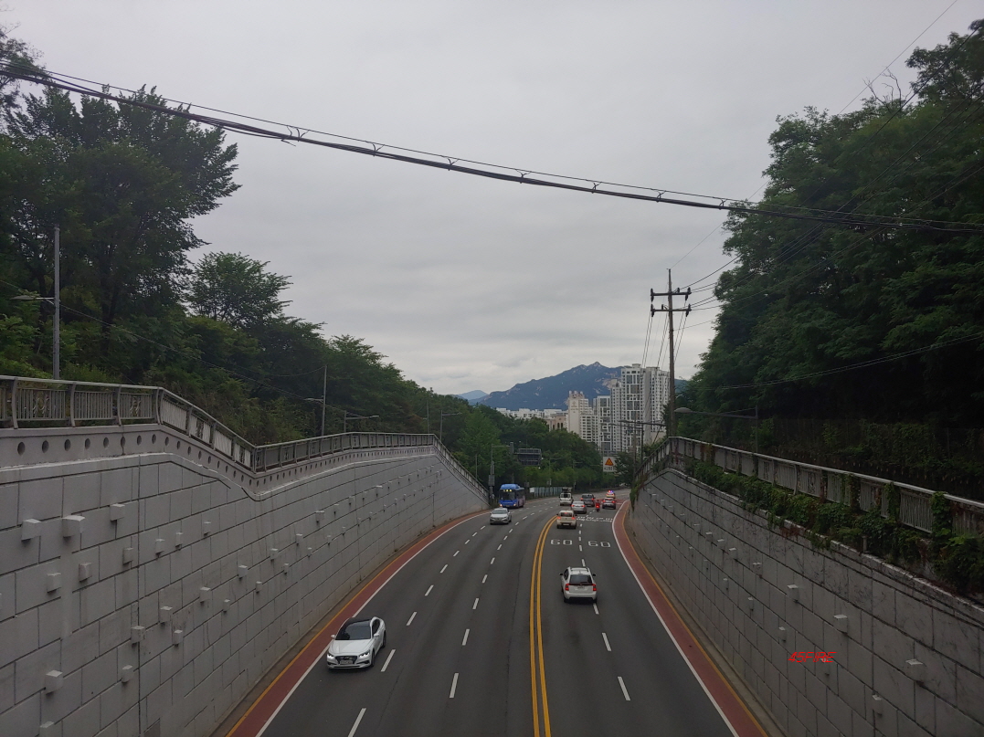 저 멀리 아파트들이 보였다. 좌측 사진 골목 끝으로 보이는 것은 앞서 언급했던 꿈의숲코오롱하늘채아파트이고, 우측 사진 뒤로 보이는 것은 꿈의숲아이파크이다.