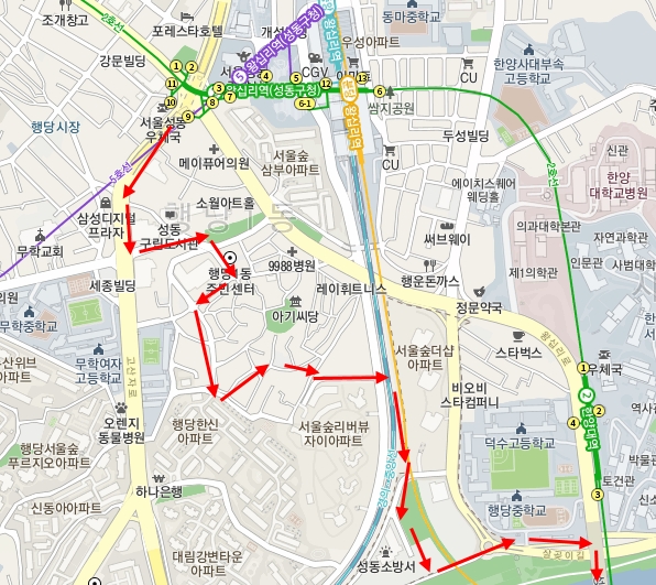 지금까지 봤던 행당7구역 주변 지도이다. 행당중앙교회가 있는 곳이 행당7구역이다.