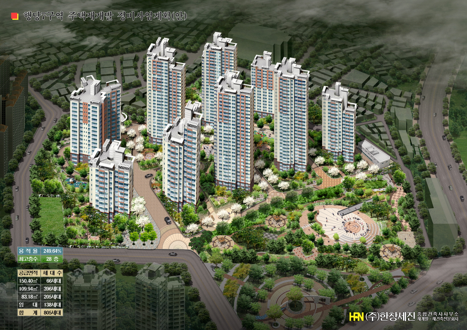 몇 년 뒤에 행당7구역은 이런 모습일 것이다. 용적률은 250% 정도. 중대형 위주의 공급이다.