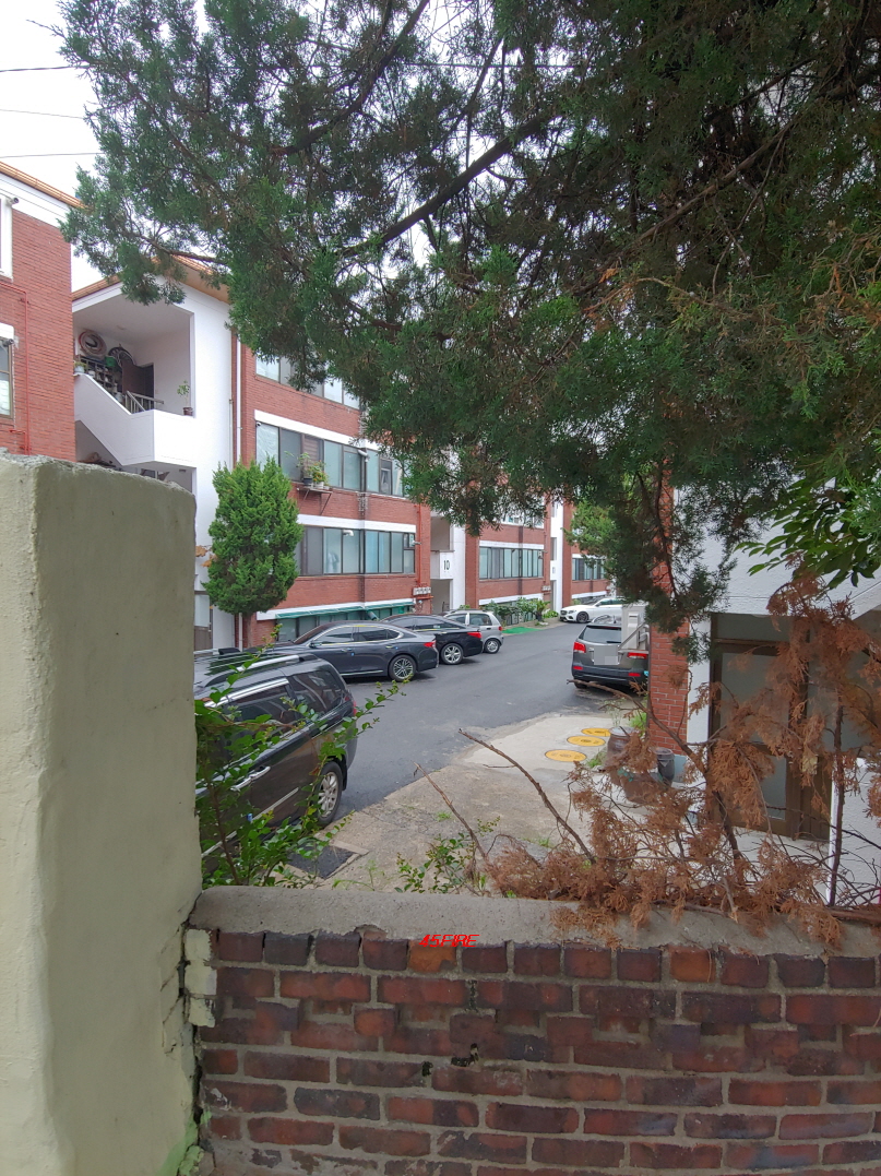지도앱에서 이름이 확인 안 되는 소규모 단지 같은 것이 보여서 담장 너머로 찍어봤다. 지금 카카오맵에서 확인하니까 무학빌라이다. 준공일 등의 정보가 한 번에 안 나오는데 1986년 정도 같다.