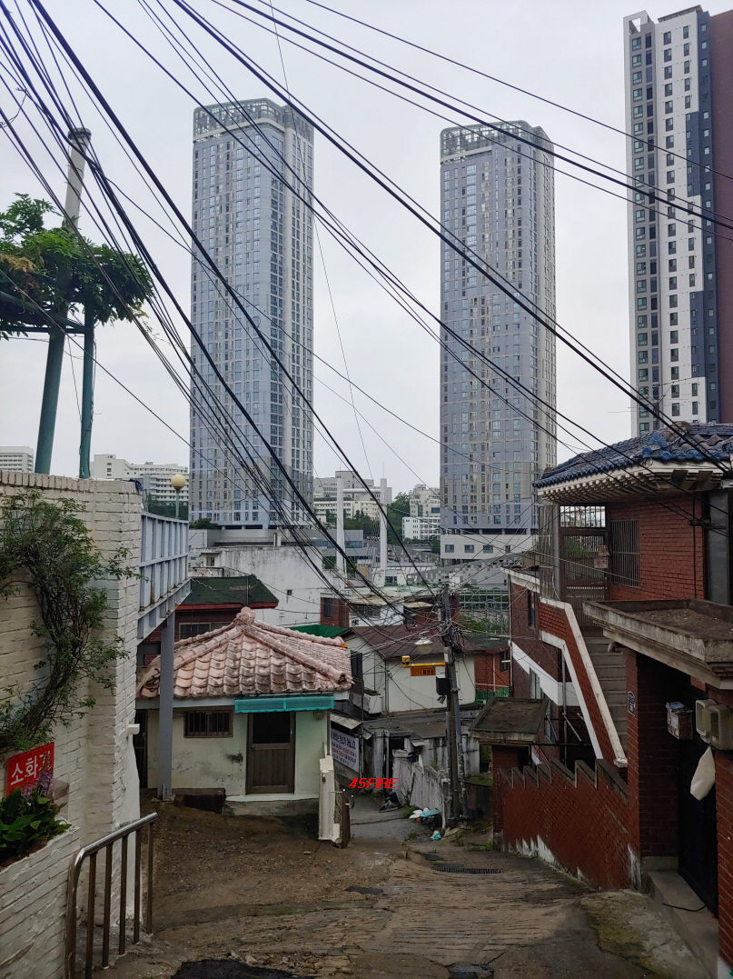 이번에 찍은 사진들 중에 가장 마음에 들었던 사진 중 하나이다. 저 멀리에는 고층 아파트들이 보이는데 이쪽은 철거 예정지이다. 이촌동이었나. 외국인이 찍은 사진이라고 돌아다니는 사진도 비슷한 모습이었다.