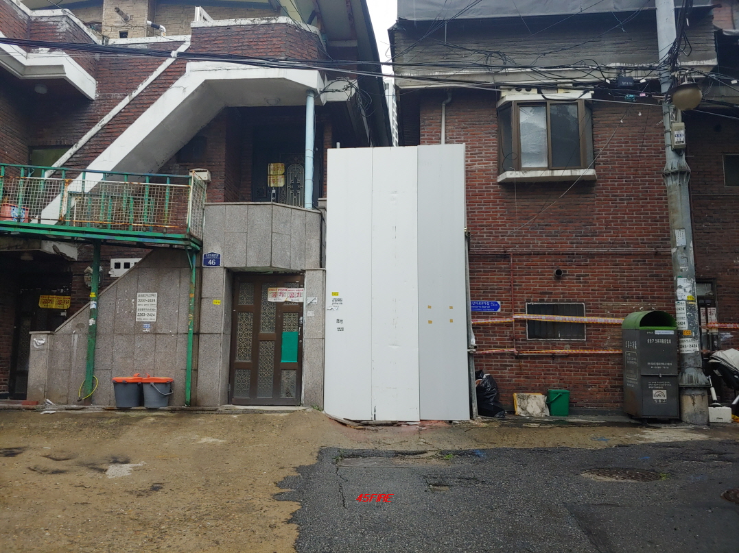 왕십리역 9번 출구로 나와서 경매 물건지로 먼저 갔다. 대로변을 따라 가도 되는데 일부러 행당1동 주민센터가 있는 골목으로 들어갔다. 아무래도 대로변보다는 골목길에서 동네 분위기가 잘 느껴진다. 경매 물건지 주변에 '공가' 스티커가 붙어있는 집들이 있었다. 호기심에 그쪽 골목으로 쭉 올라가 봤다. 지도앱에서도 '행당7주택개발'이라고 나오는 지역이었다.