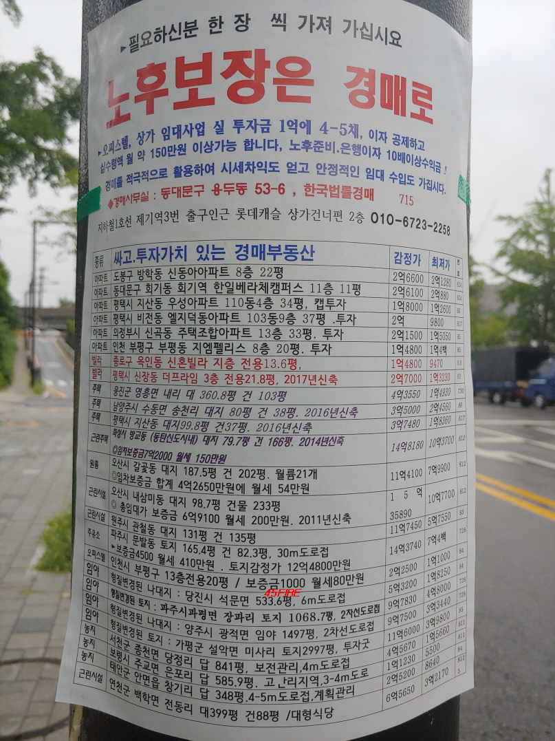 맞구독중인 아립땁다님이었던가. 동네에서 '경매 배워보실 분' 전단지를 보셨다고 했는데 드디어 경매 전단지를 보게 됐다.