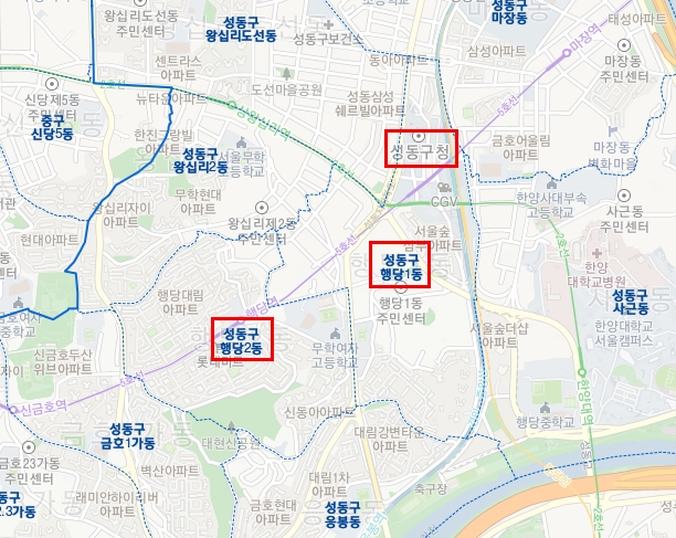 성동구 행당동은 왕십리역 좌측에 있다. 왕십리역 주변을 포함한 행당1동과 좀 떨어진 행당2동으로 분리되어 있다. 이번에 다녀온 곳은 행당1동으로 행당7구역 재개발이 진행 중이었다. 위 지도를 자세히 보면 알 수 있는데 행당2동은 이미 대부분 아파트가 들어서 있다.