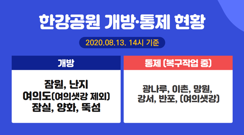 기존 글에 2020년 8월 14일 10시 기준 한강공원 개방/통제 현황을 추가합니다.