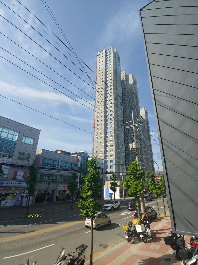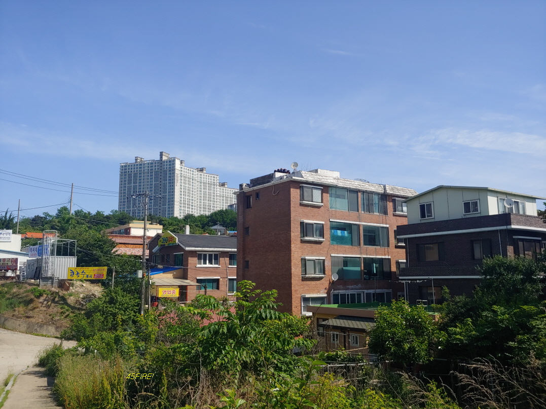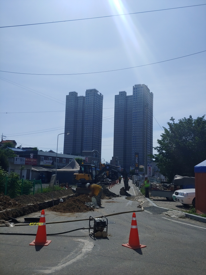 상수도인지 공사중이었고 저멀리 공사중인 고층 아파트가 보였다.