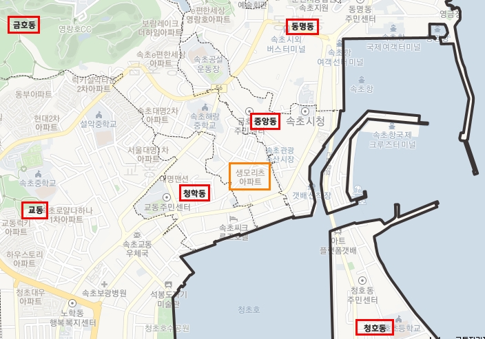 청호초 주변으로 청학동, 교동, 조양동, 청호동이 있다. 여기를 모두 다녀왔다.