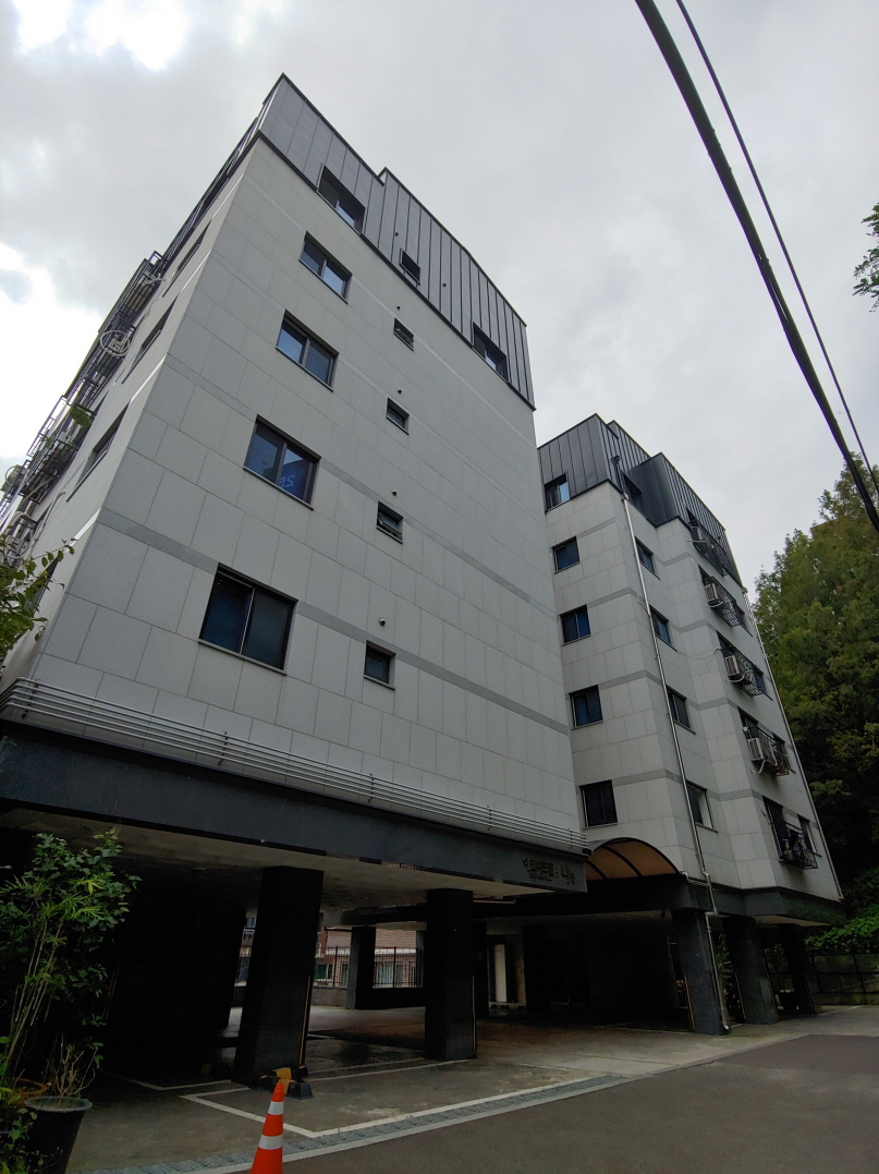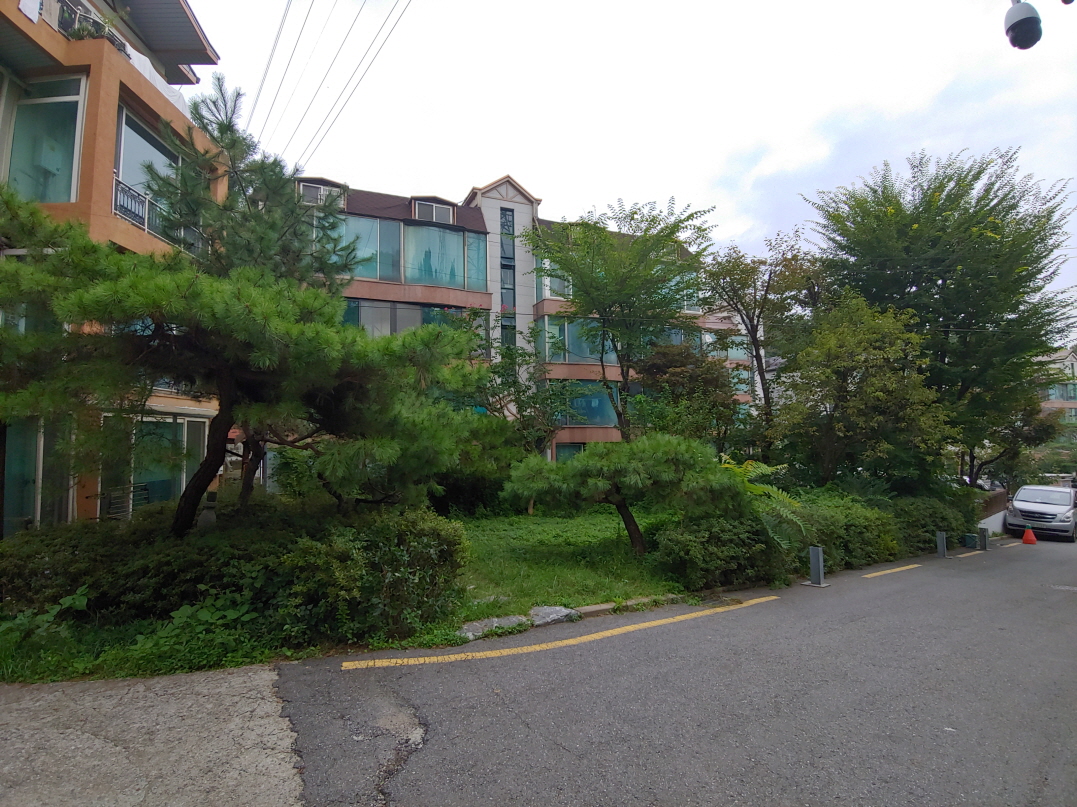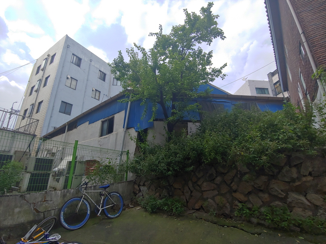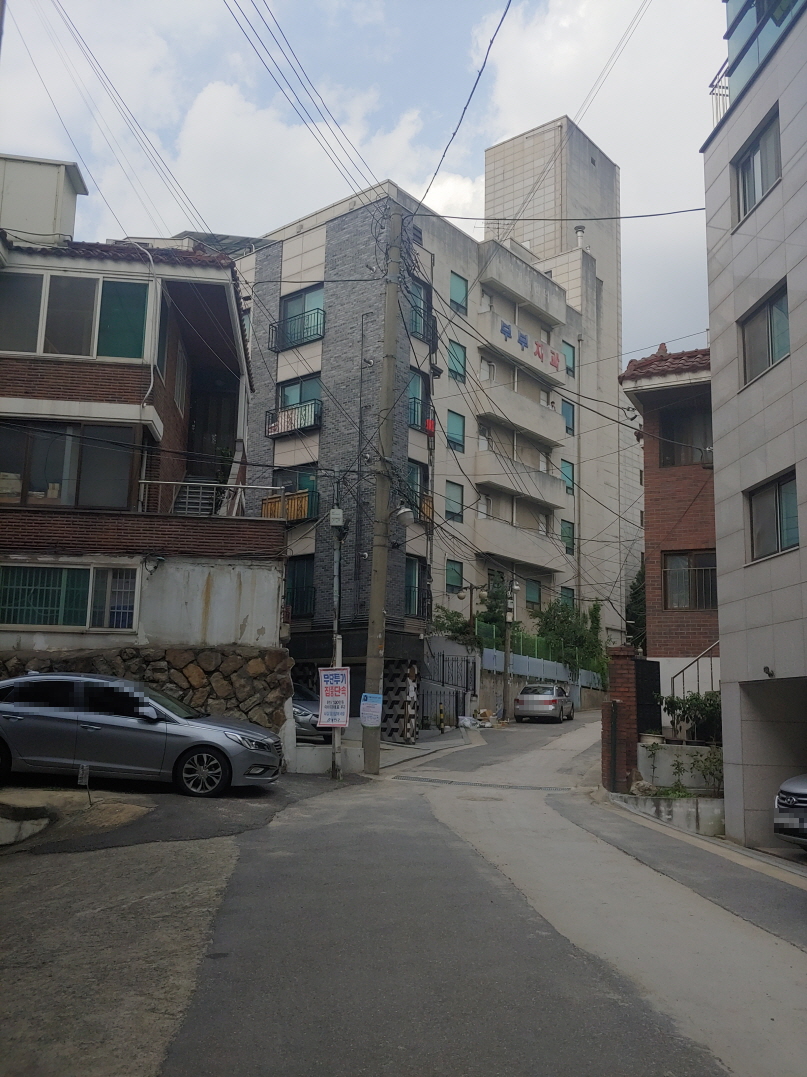 뒤쪽에서 찍은 사진이다. 대로변으로 왔으면 건물 입구를 찍을 수 있었을 텐데 앞쪽 사진은 찍지 못했다. 건물은 1966년에 지어진 건물로 위반 건축물이라 더욱 복잡했다. 오래된 건물의 가치를 무시하면 토지 가격은 감정가 기준 평당 2521만 원 정도, 낙찰가 기준 평당 2069만 원이다. 길 건너편의 워커힐 아파트가 언젠가 재건축되거나 리모델링되면 이쪽의 토지 가격도 더 오르지 않을까.