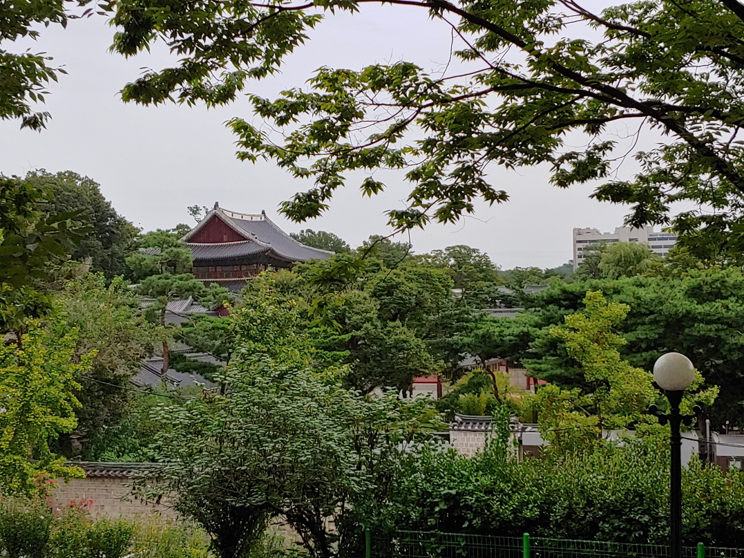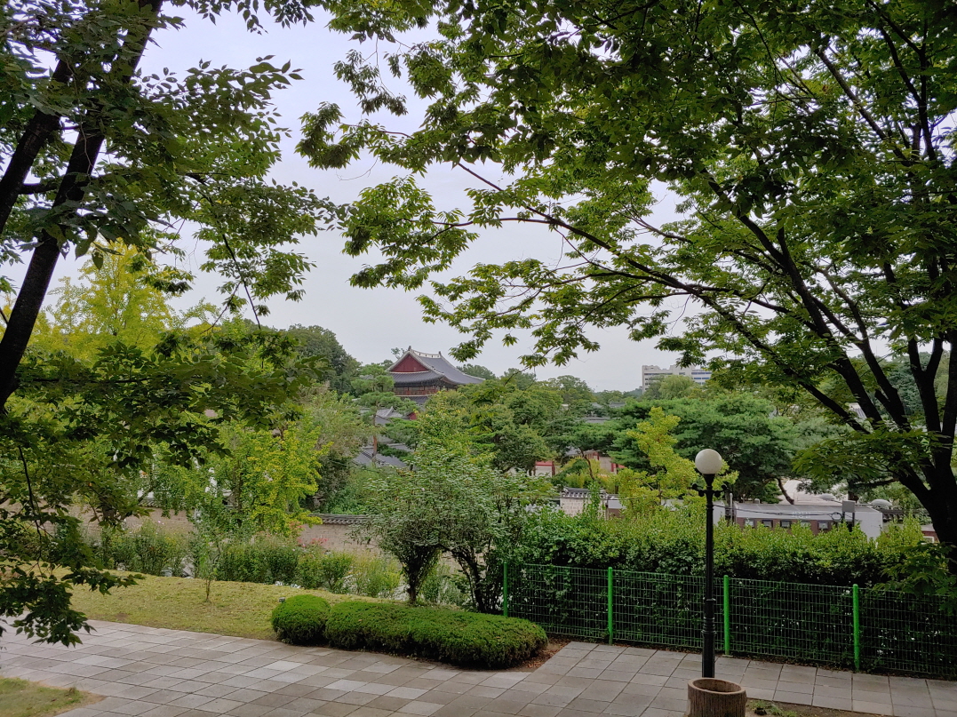나무에 가려서 궁궐 지붕까지는 잘 안 보이지만 그래도 바닥에서도 이런 뷰가 나오는데 바로 옆에 있는 건물들에서는 창덕궁 뷰를 확실히 즐길 수 있을 것 같았다.
