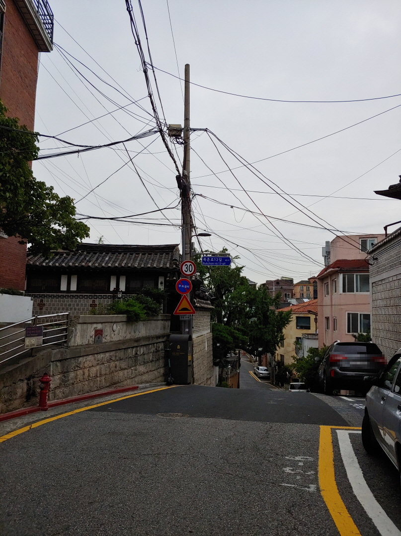 여기는 가회동이다. 지도상 여기도 북촌한옥마을이라고 나와서 이 근처에도 한옥이 많을 줄 알았는데 관광객들이 많이 찾는 북촌한옥마을은 여기가 아니라 반대편에 있는 것 같다.
