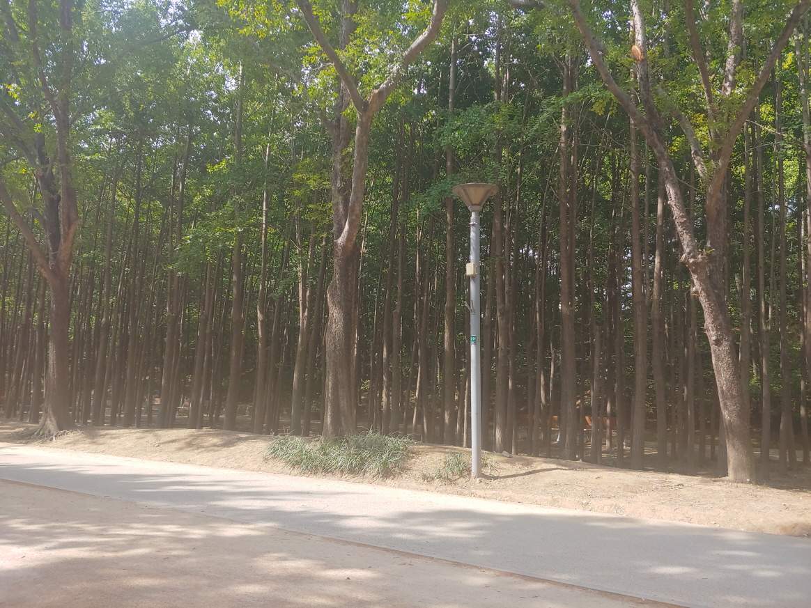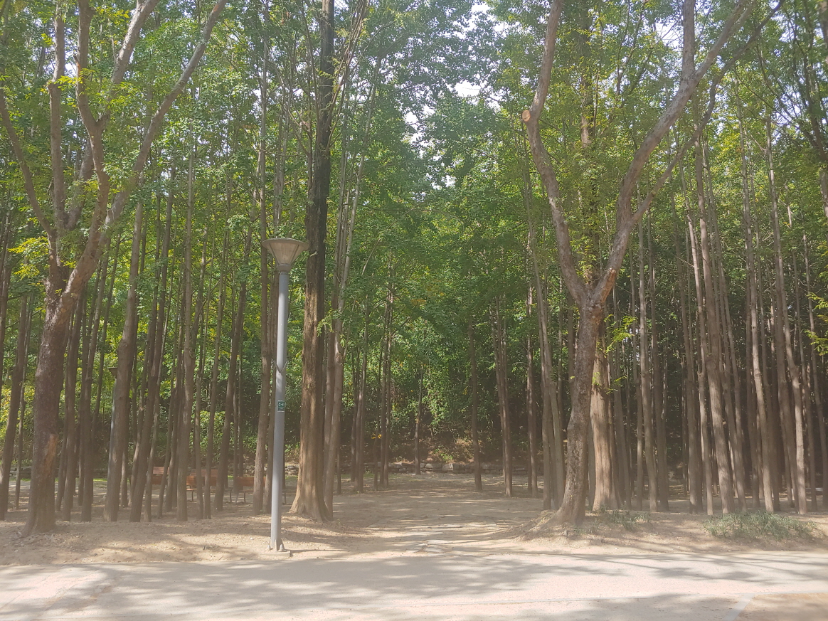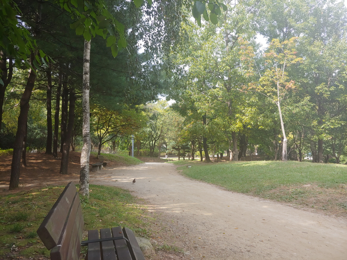 구석구석 돌아다니지는 않고 큰 길을 따라 한 바퀴 돌았다. 여기저기 앉아서 쉴 수 있는 벤치들이 보였다. 입구 근처에는 운동기구도 있었다.