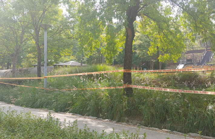 여기는 놀이터 같은 곳인데 역시 통제 중이었다.