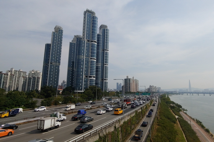 저 멀리 서울타워도 보이고 연휴라서 그런지 강변북로에 차들이 많다.
