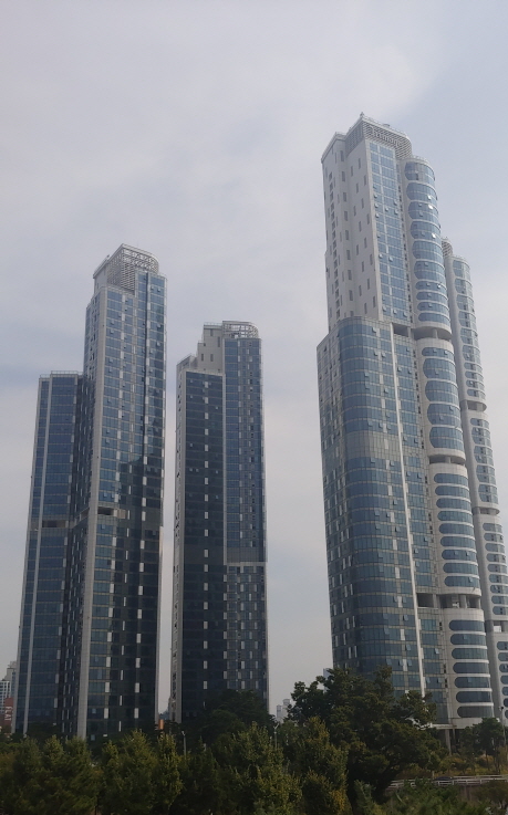 다리 위에서 찍은 고층 아파트 - 트리마제 아파트