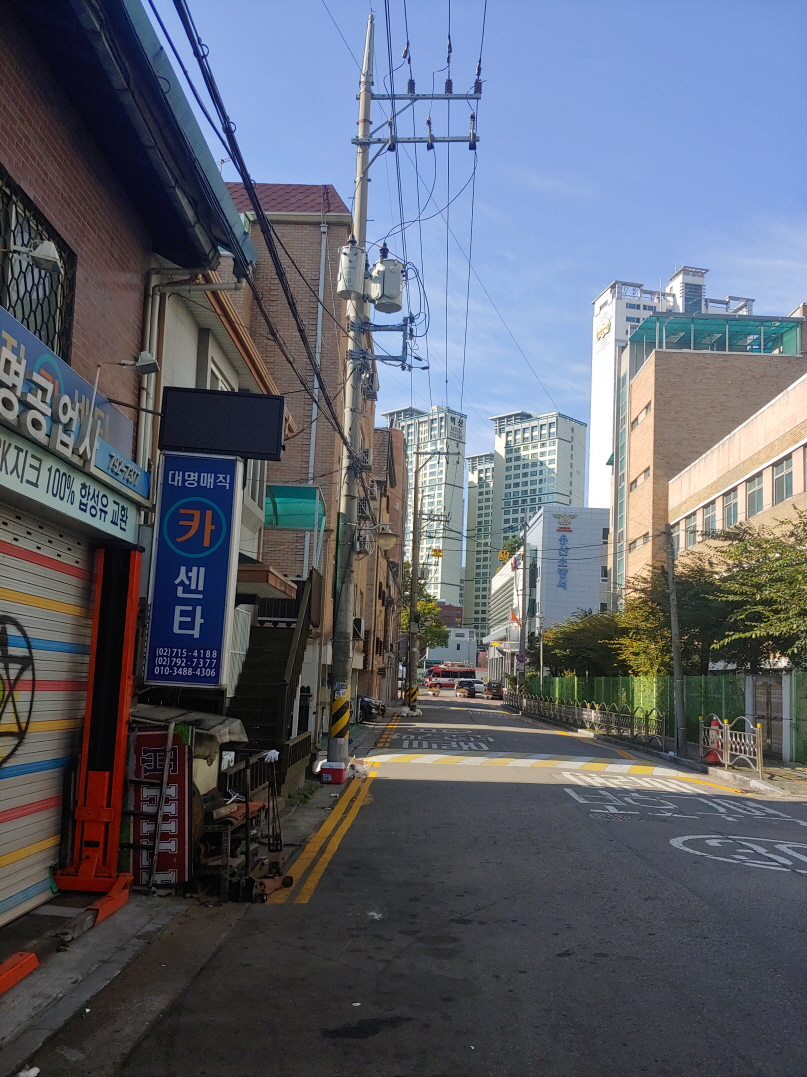 주차된 차량의 번호판이 찍혔는데 모자이크 처리를 안 하고 사진 일부를 잘라내면서 도로도 같이 안 보이게 됐다. 이 골목이 삼각지역에서 역세권 청년주택으로 가는 길이다.