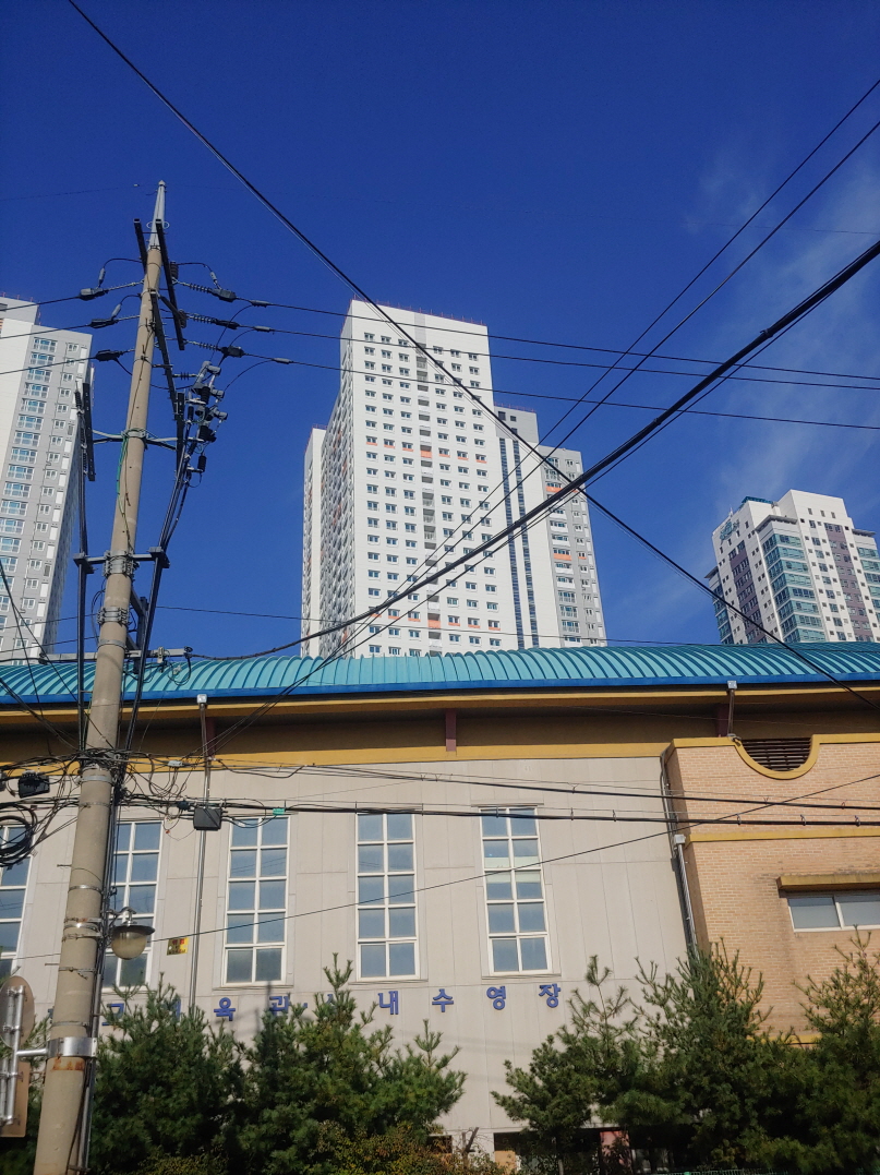 다른 쪽에서 건물 한 면이 제대로 보이게 찍어봤다. 조만간 완전한 외관을 갖출 것 같다. 이전에 다소 흉물스러웠던 것은 위 사진 가운데 아래쪽처럼 미완성의 모습이었기 때문이다. 회색에 주황색 무늬가 잔뜩 보였던 적이 있다. 알고 보니 회색은 아직 완성되지 않은 상태였다. 주황색도 건물 색이 아니라 방수포인지 천막인지를 대놓은 것이었다.