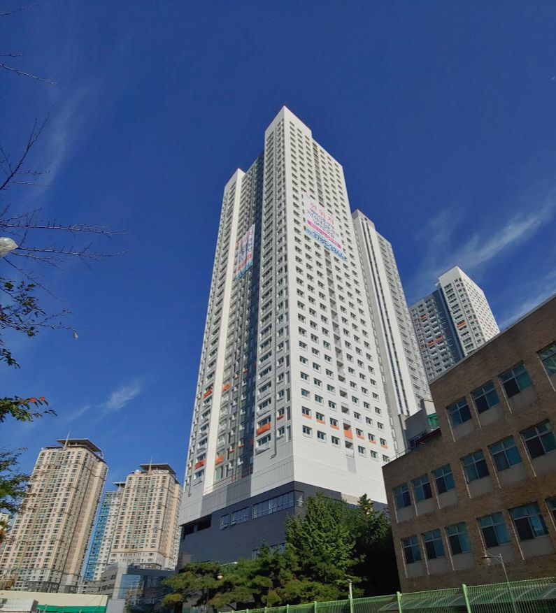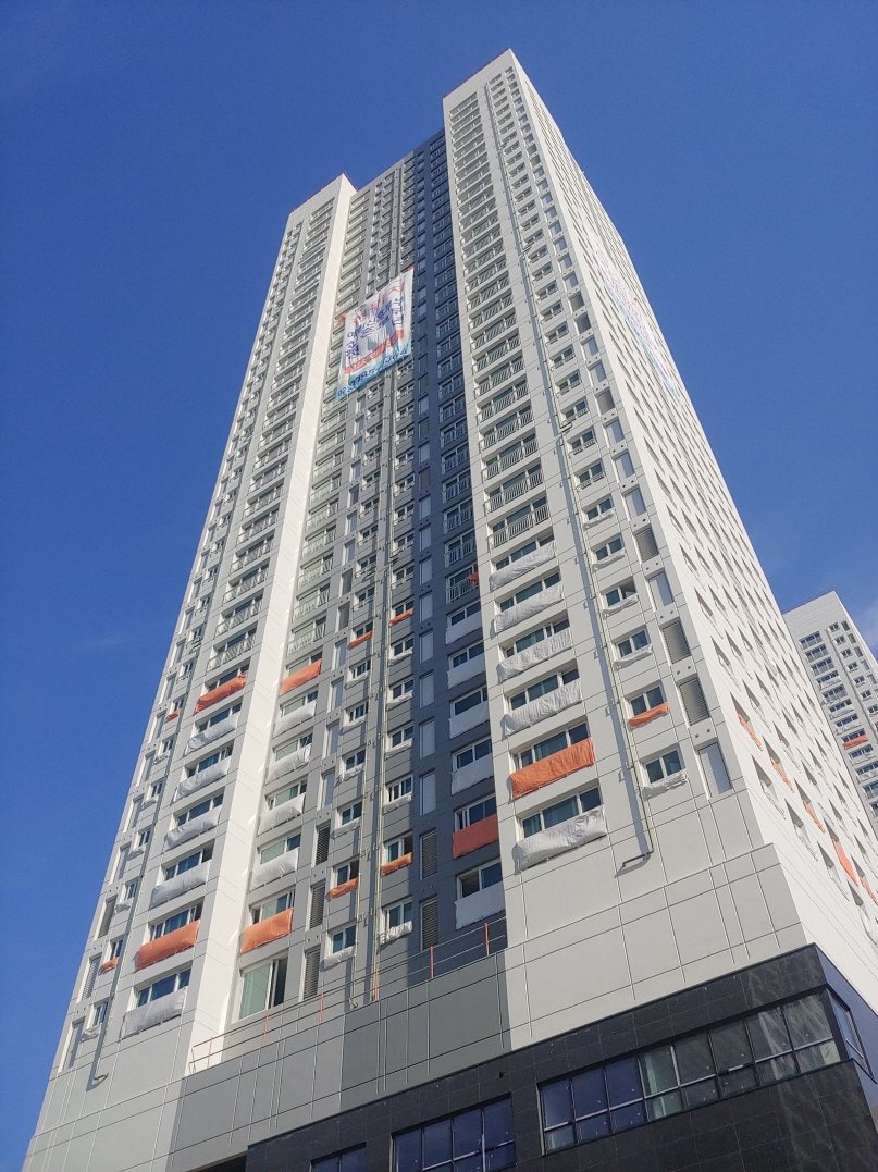 2021년 2월 입주 예정이라서 그런지 건물 외관이 거의 완성된 것처럼 보였다.