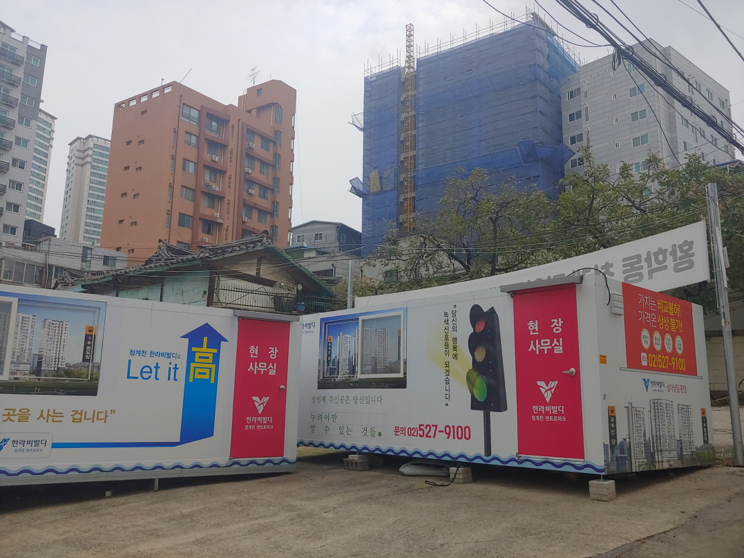 황학동 청계 지역주택조합 개발사업 부지도 보였다. 지역주택조합은 말이 많은데 이렇게 현장에 부지 표시와 사무실이 있는 것은 처음 보는 것 같다. 사이트를 가보니까 소형으로 410세대 정도 공급할 예정이다.