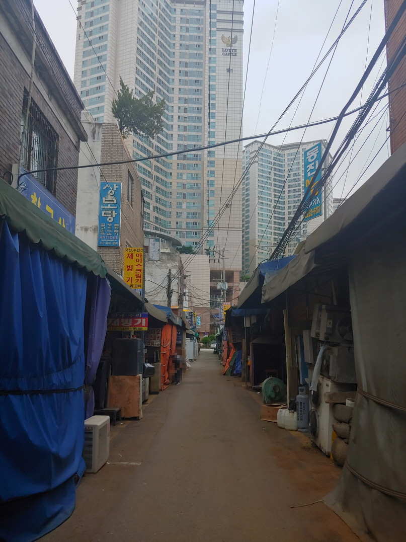 골목 끝으로는 고층 아파트가 보였다. 롯데캐슬베네치아 아파트다.